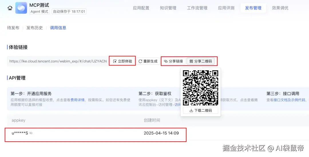 发布成功后,查看详情 可以通过二维码、链接访问,还可以通过API集成到其他系统,比如小程序、网站、app等等...