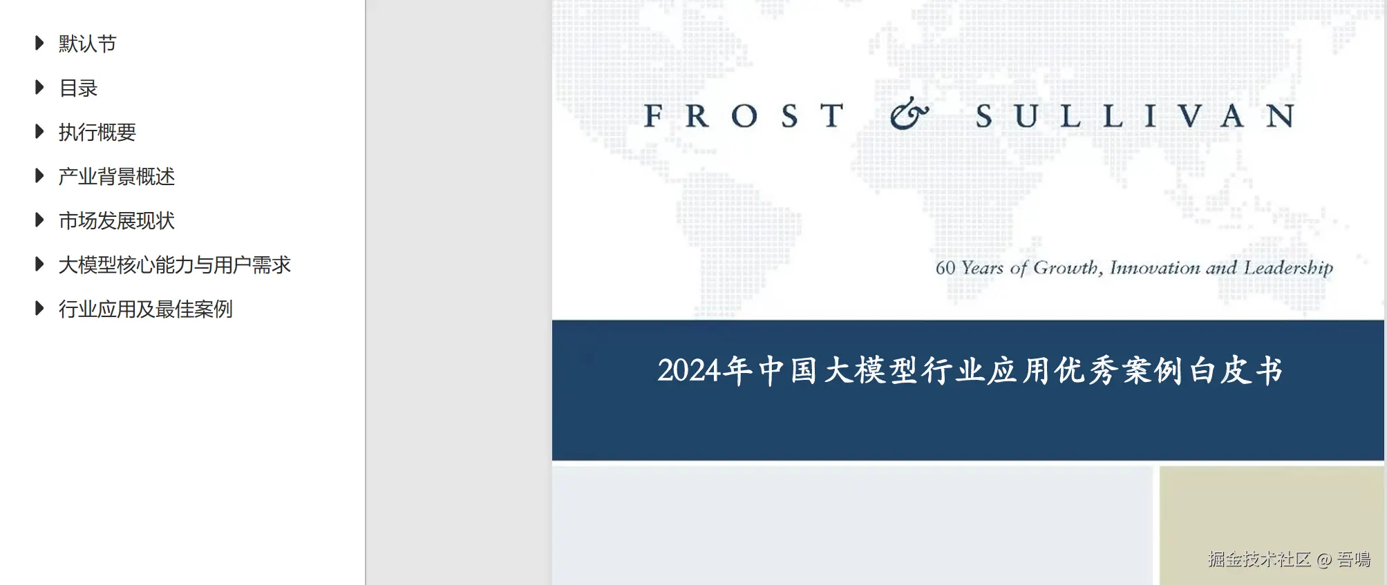 今天吾鳴要给大家分享的是一份中国AI大模型爆发背景下,中国大模型行业应用优秀案例白皮书,白皮书内容主要围绕着2024年AI大模型在哪些行业有优秀的落地场景案例展开。报告一共84页PPT,文末附上完整版下载地址。