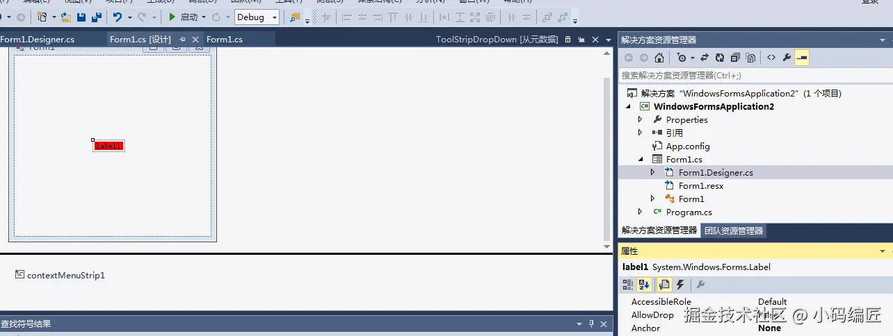 右键菜单,用于将菜单和某个控件绑定,当右键单击控件时,弹出菜单,我们可以在菜单中编辑业务代码,如下: