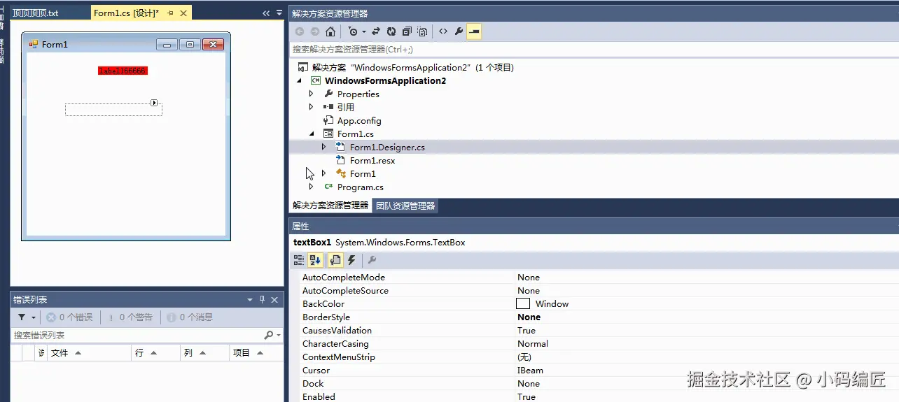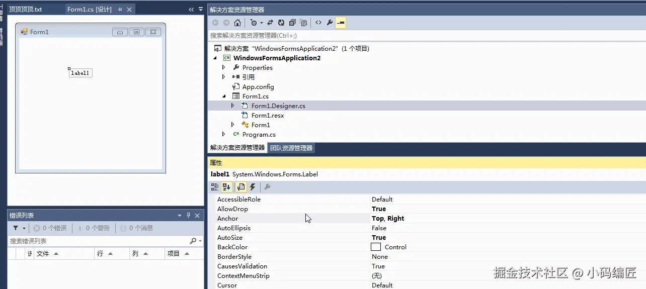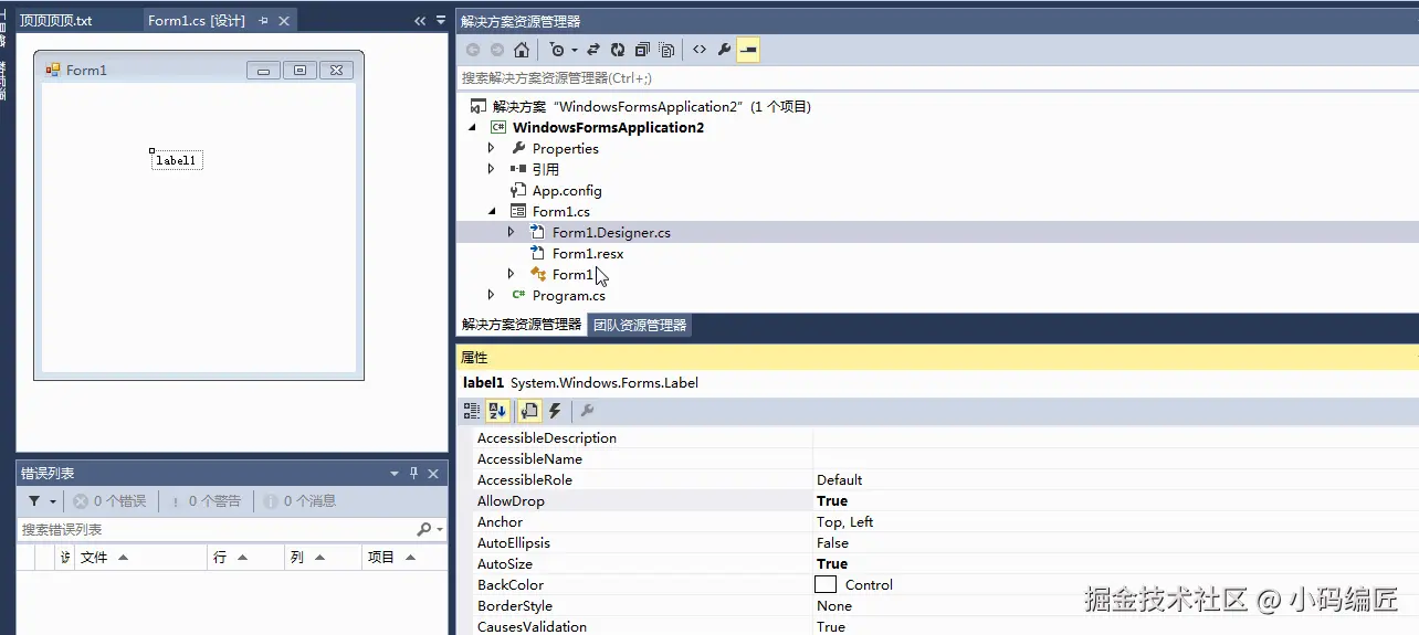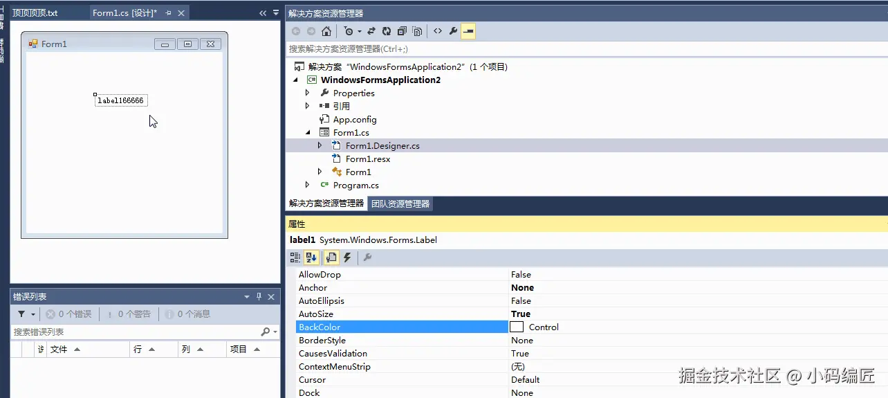 Label一般用于显示文本或者作为"按钮使用",当作为显示文本使用时,通过设置label的Text属性实现,当作为“按钮使用时”,在label的单击事件下注册事件即可,下面详细介绍label的属性以及事件: