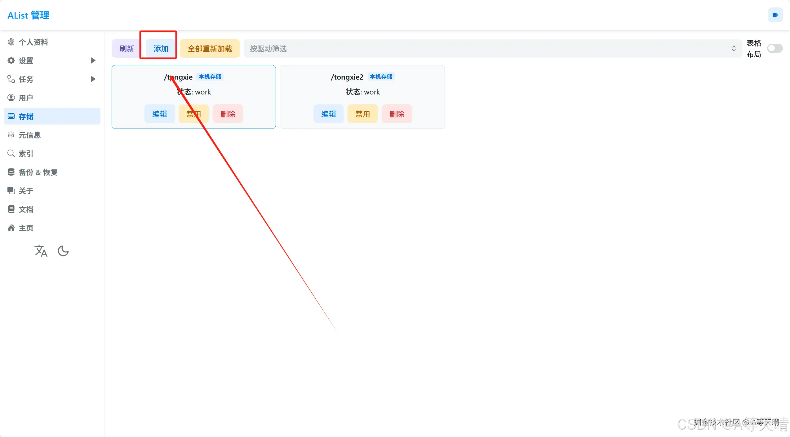 点击alist 然后在这里设置好你的用户名和密码