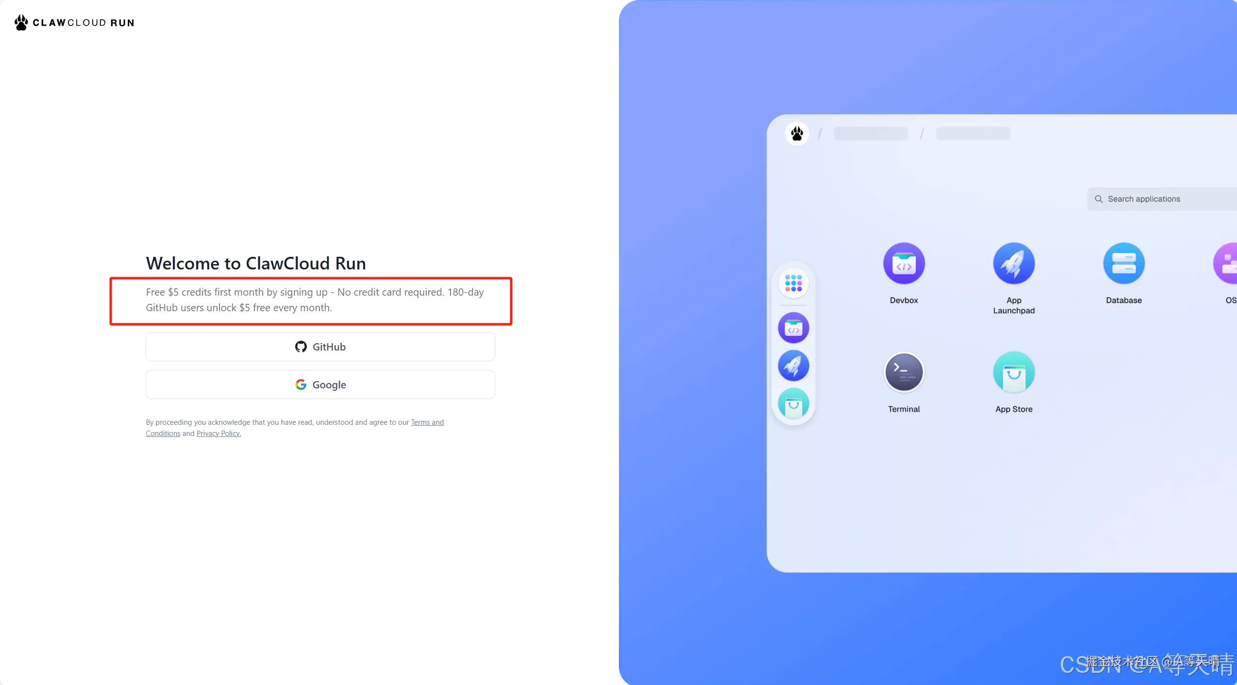 首先介绍一下ClawCloud,这是阿里在新加坡推出的云服务 Claw Cloud旗下的 Claw Cloud Run 近日正式上线,这是一款类似于 Vercel 和 Netlify 的在线开发平台,专为开发者和个人用户设计。通过 Claw Cloud Run,用户可以快速部署各种流行的应用程序和开源项目,如 Alist、Dify、frp 等,无需复杂的配置或高昂的成本。目前,平台提供永久免费的 5 刀/月额度,只需绑定一个注册超过 180 天的 GitHub 账号即可享受。