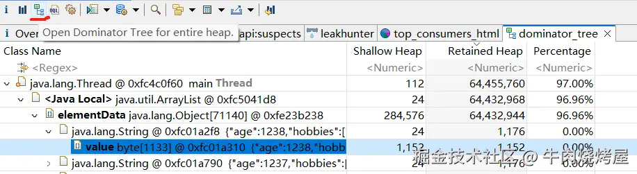 一般关注 char[] byte[],因为往往是大量 JSON 串导致的