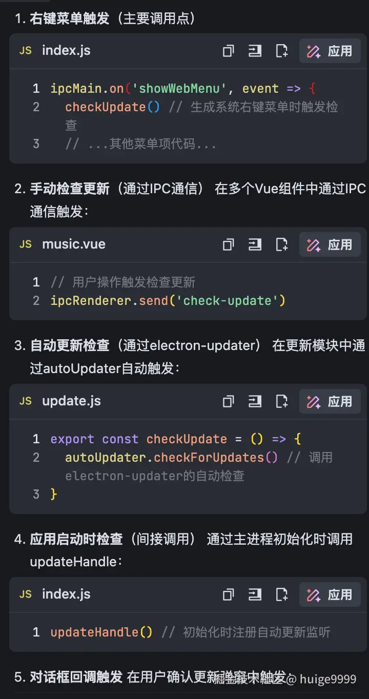 - AI 梳理: 将搜集到的原始文本或链接(如果是公开网页,可以复制内容)交给 AI Chat 模式。让它发挥强大的阅读理解和信息总结能力,帮你: * 提取核心要点 * 解释关键概念或函数用法 * 整理出参数说明、返回值、注意事项 * 提供使用示例 * 再次强烈推荐:将 AI 梳理后的结果整理成清晰的 Markdown 文档。