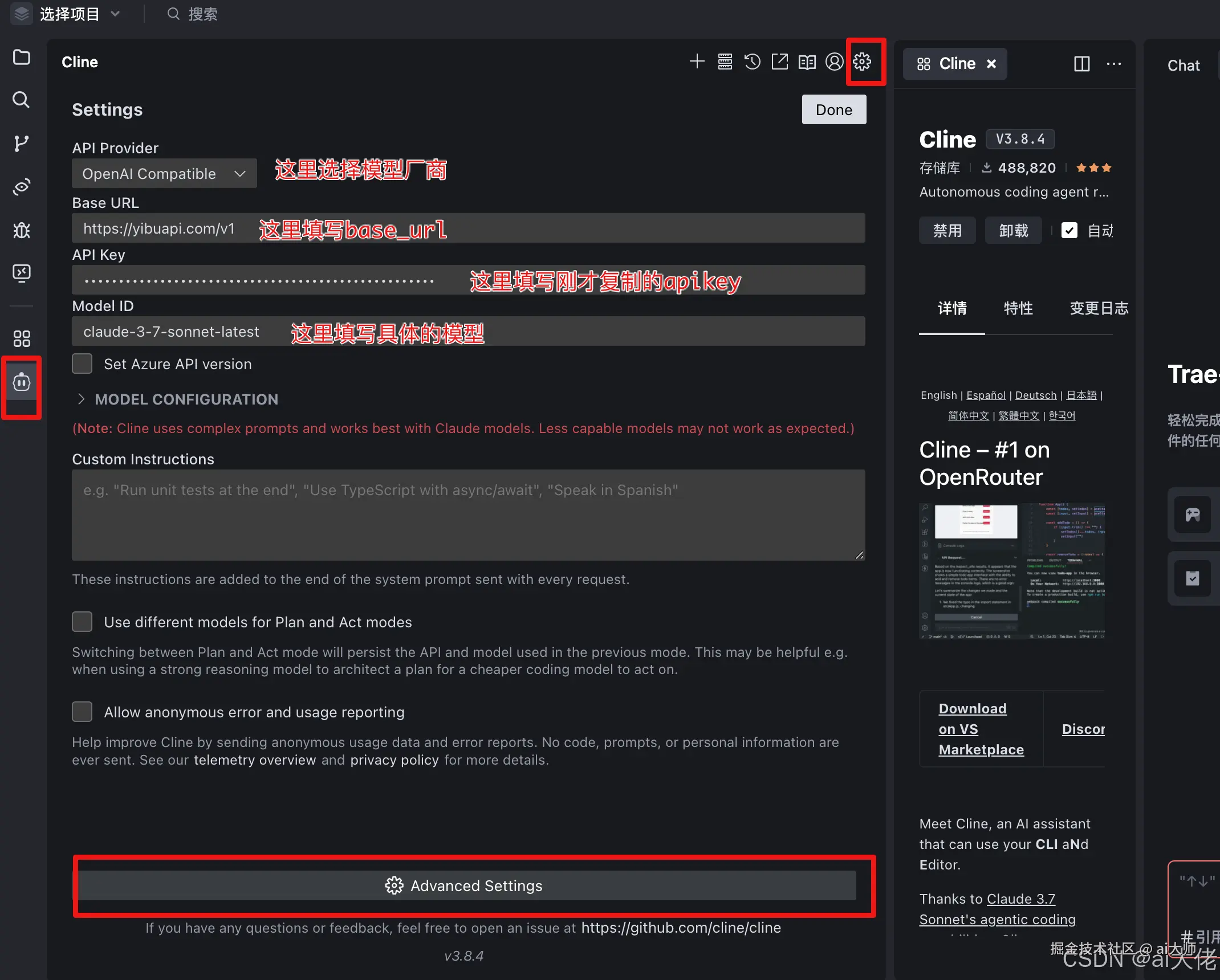 - 设置 Cline 插件