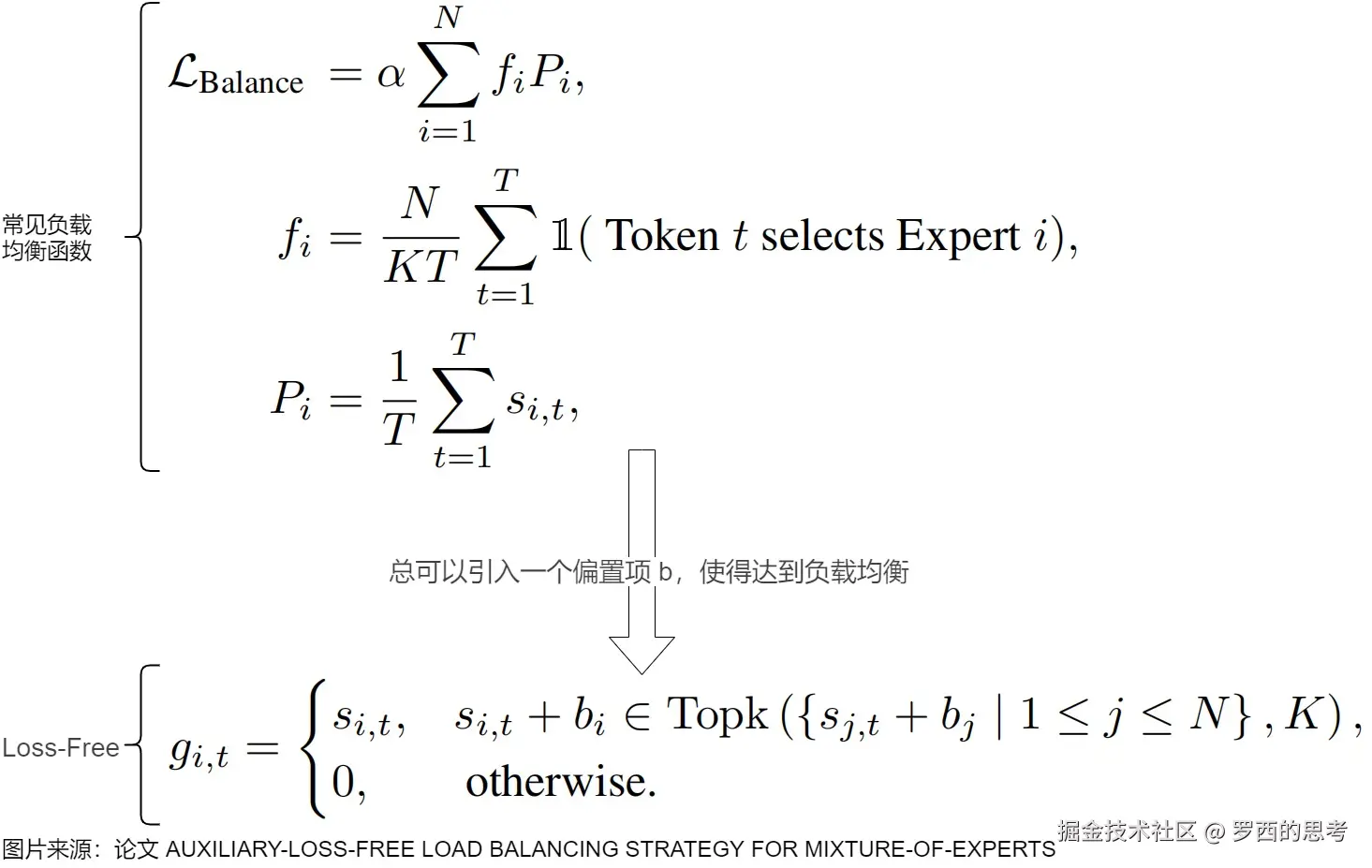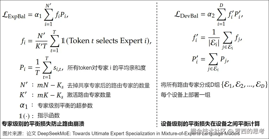 为了缓解负载失衡,人们在模型训练的目标函数基础上引入了辅助损失函数(auxiliary load balancing loss ),鼓励给予所有专家同等的重视,以促进每批次中令牌(token)在专家间的均匀分配,这些损失项被添加到训练目标中。