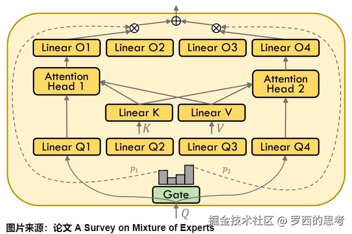 - 雇佣多位各有所长的程序员,比如前台开发程序员和后台开发程序员,再加上一位开发经理来分配工作。这类似于 MoE 方法,每个程序员充当专家,开发经理则作为门控机制(Gating)来选择专家。