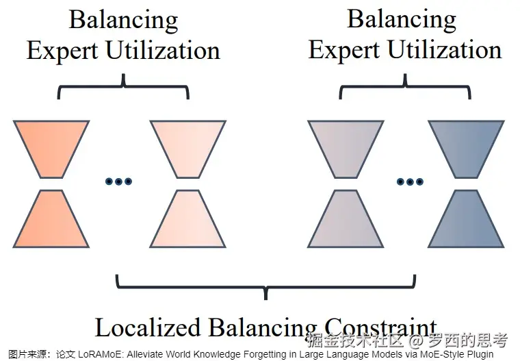 虽然稀疏门控G(x;Θ)能在不增加计算成本的情况下显著扩展模型参数空间,但其性能高度依赖门控机制的有效性 。MoE的公式是“每遇到一个Token,就去找相应的Expert来计算”,但实际训练时是反过来的:先给每个Expert分配好相应的算力,然后将Token分配(Route)到所属的Expert中并行计算,这也就为什么负责打分的门控机制也被称为Router的原因。因为门控机制无法控制发给专家的token的概率,所以在实际操作中,会存在专家间工作负载分布不均衡的情况。某些专家被频繁使用(接收到了很多token)而其他专家却很少被调用(接收的token寥寥无几)。我们管这种现象叫expert负载不均衡。这不仅不符合MoE的设计初衷(术业有专攻),还影响计算效率(例如引起分布式训练中各卡通讯时的负载不均)。