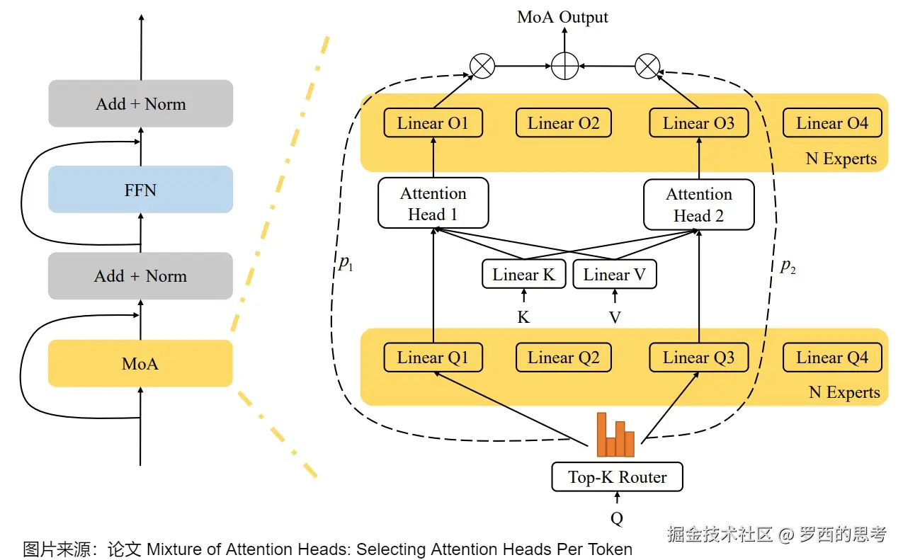 稀疏激活:对于每个输入,只有部分专家被激活,大大减少了计算量。