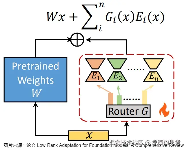 动态路由:使用门控网络(Gating Network)来决定每个输入应由哪些专家处理。