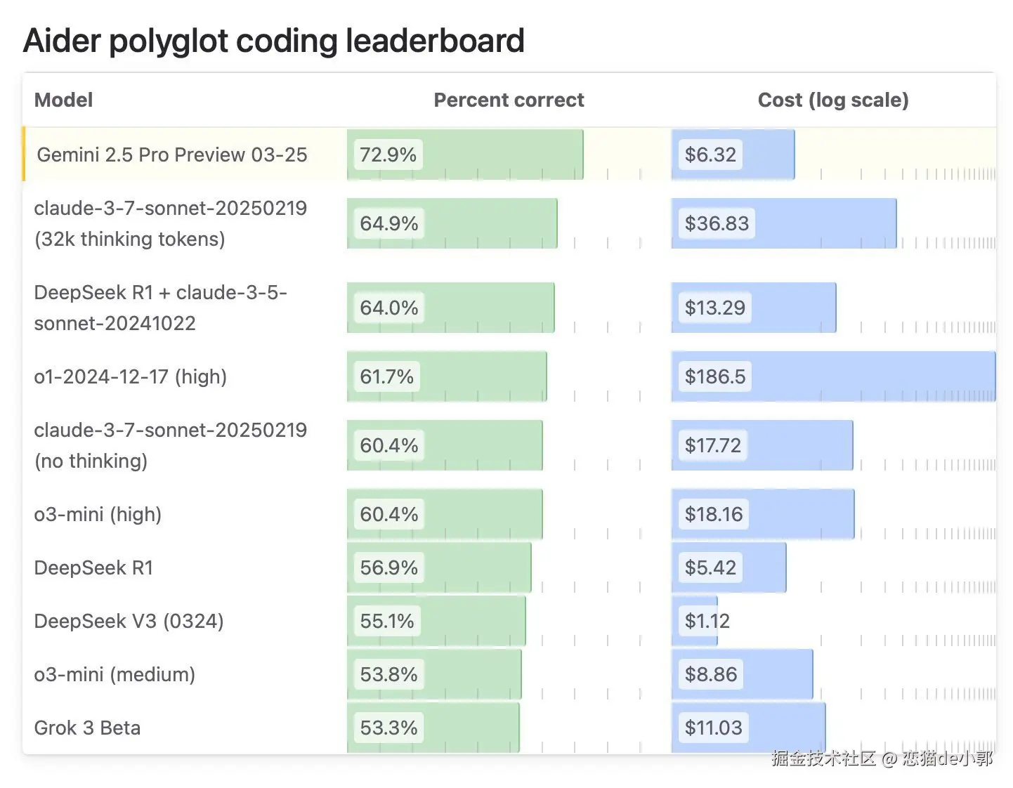 最后,下面是截止 2025 年 4 月 20 日在网上可以看到的不同纬度和条件下的各大 AI 模型对比,大家可以酌情参考: