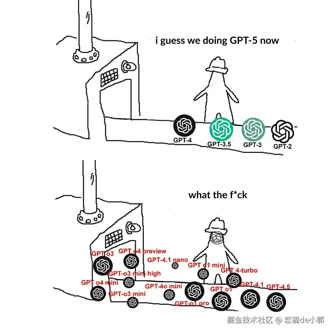 事实上也是 GPT-4o 的命名让 OpenAI 的大模型家族变得“混乱”,毕竟萌新一看:o3、o4 mini、GPT-4o、GPT-4o mini 谁不迷糊。