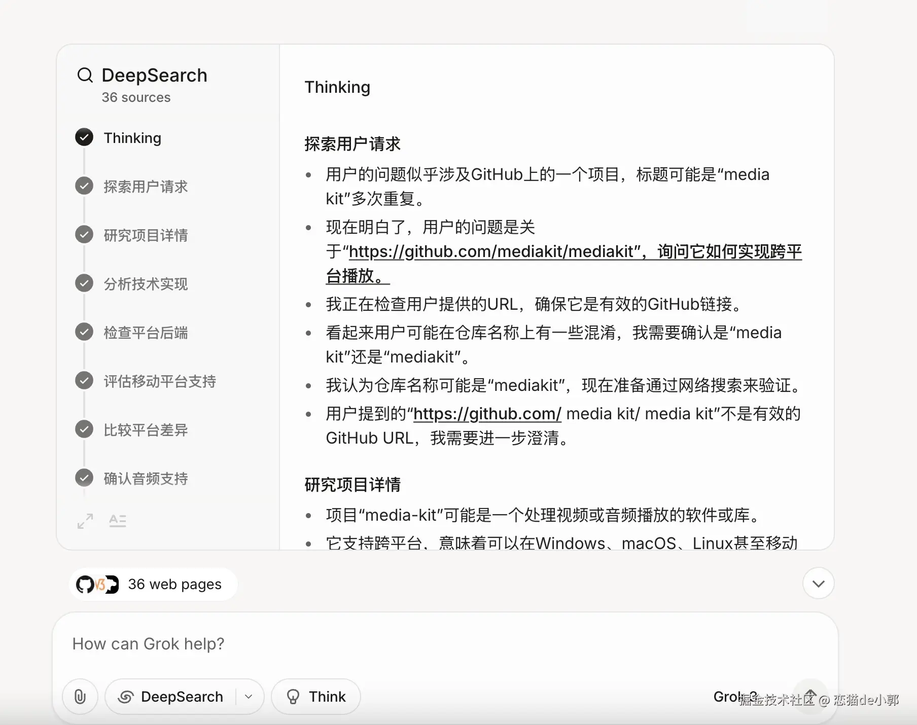 另外一个口粮款就是 Grok ,Grok 整体也没什么变体,基本上就是 Gork3,使用 Grok3 最大的好处就是额度够多,在结果还不差的情况下,每日可用额度非常可观,特别是 DeepSearch 的每日额度很充沛,虽然不及 Gemini 的报告,但是好在口粮充足: