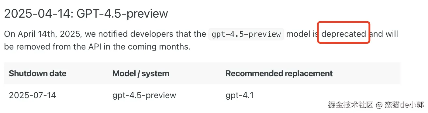 没错,本来还有个 GPT-4.5 的,也许有人已经用过,但是现在它凉了,被 4.1 替代,所以在 OpenAI 的版本里,4.1 > 4.5 。