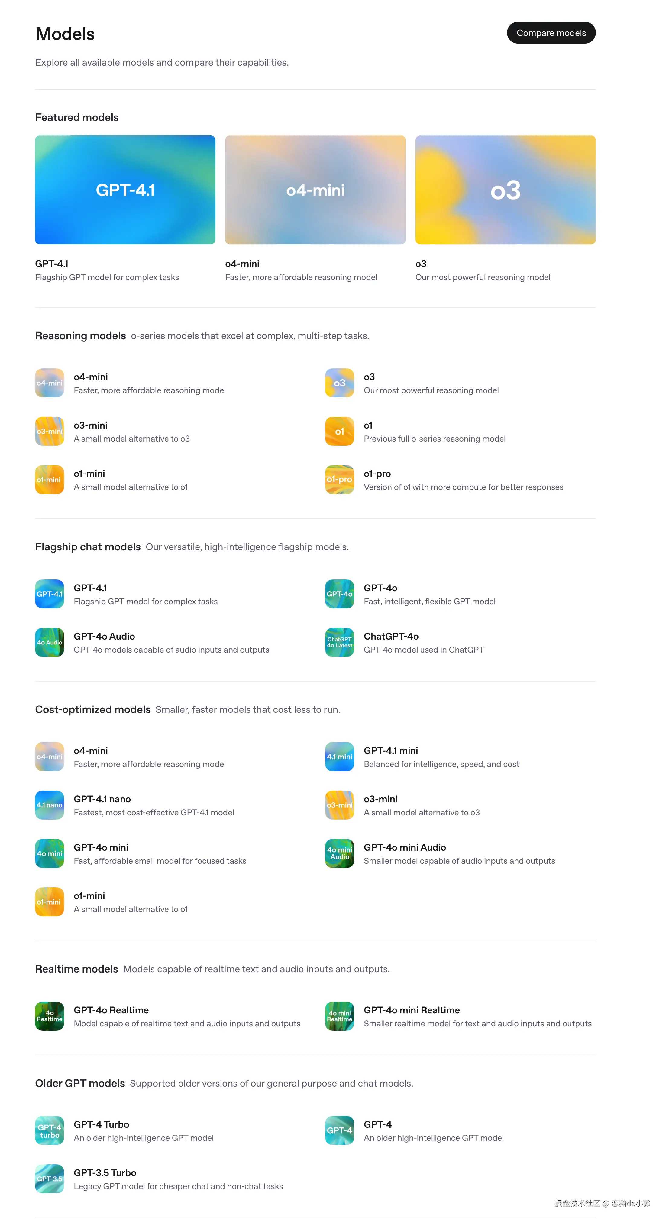 那么这么一捋是不是就清晰很多了,虽然 OpenAI 的模型很多,但是我们可以根据需求进行类目选择,而按照当前文档里最新选择: