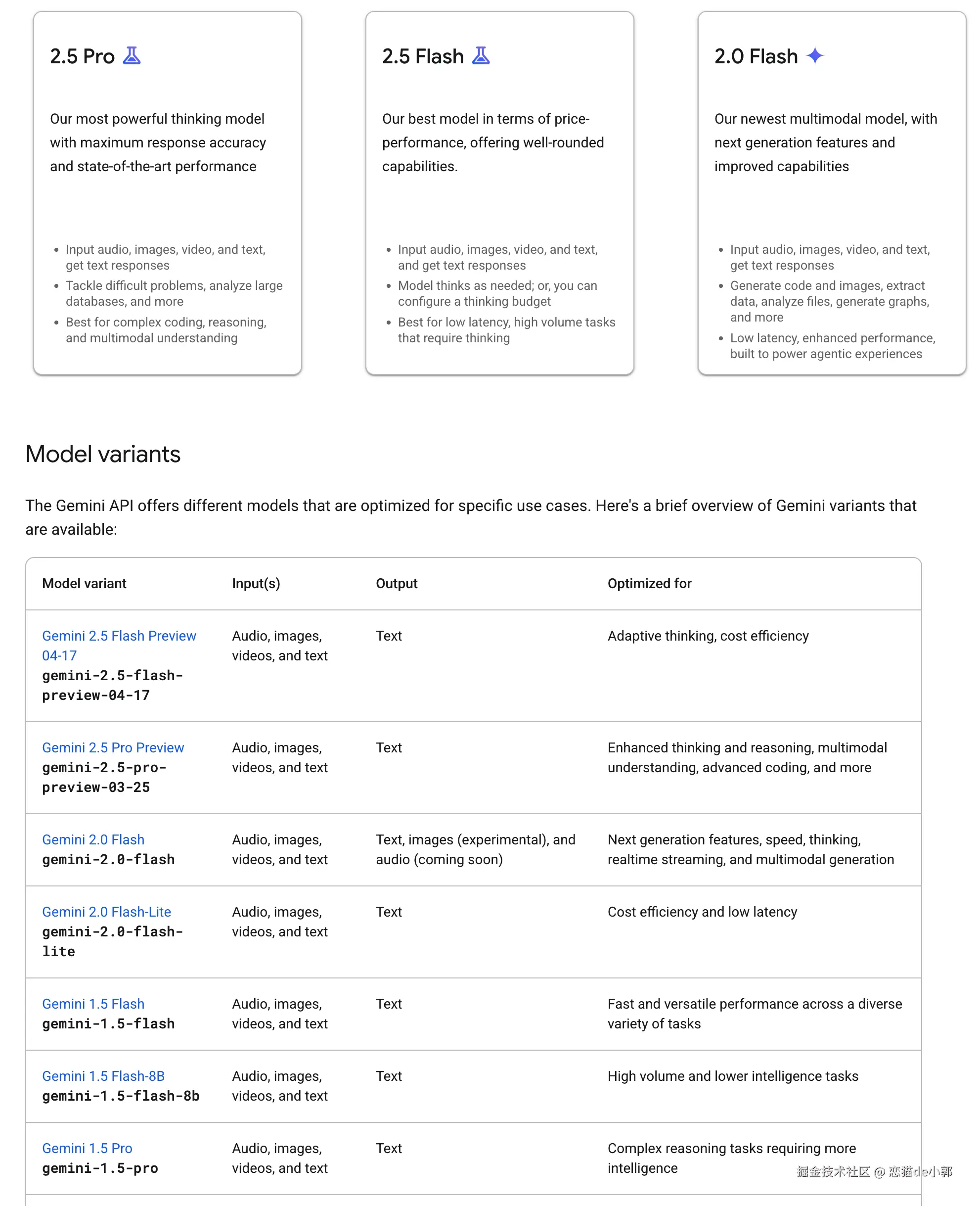 当然,现在我们只要关注 Gemini ,目前在 Gemini 的变体不像 OpenAI 那么夸张,按照目前最新版本,简单区分可以分为 Pro 和 Flash,简单说就是 Pro 是最智能的完整体,而 Flash 则是更快更高效的场景:
