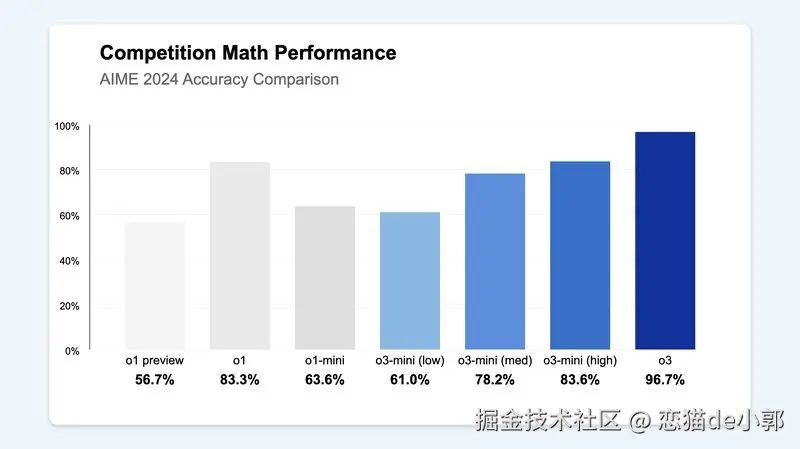 - o4-mini :比 o3 较弱,精准稍低,但是预算更友好,速度更快