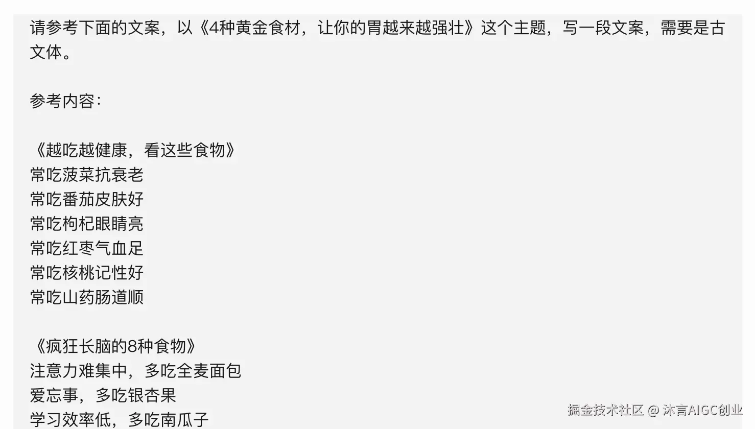 请参考下面的文案,以《4种黄金食材,让你的胃越来越强壮》这个主题,写一段文案,需要是古文体。 参考内容: 《越吃越健康,看这些食物》 常吃菠菜抗衰老 常吃番茄皮肤好
