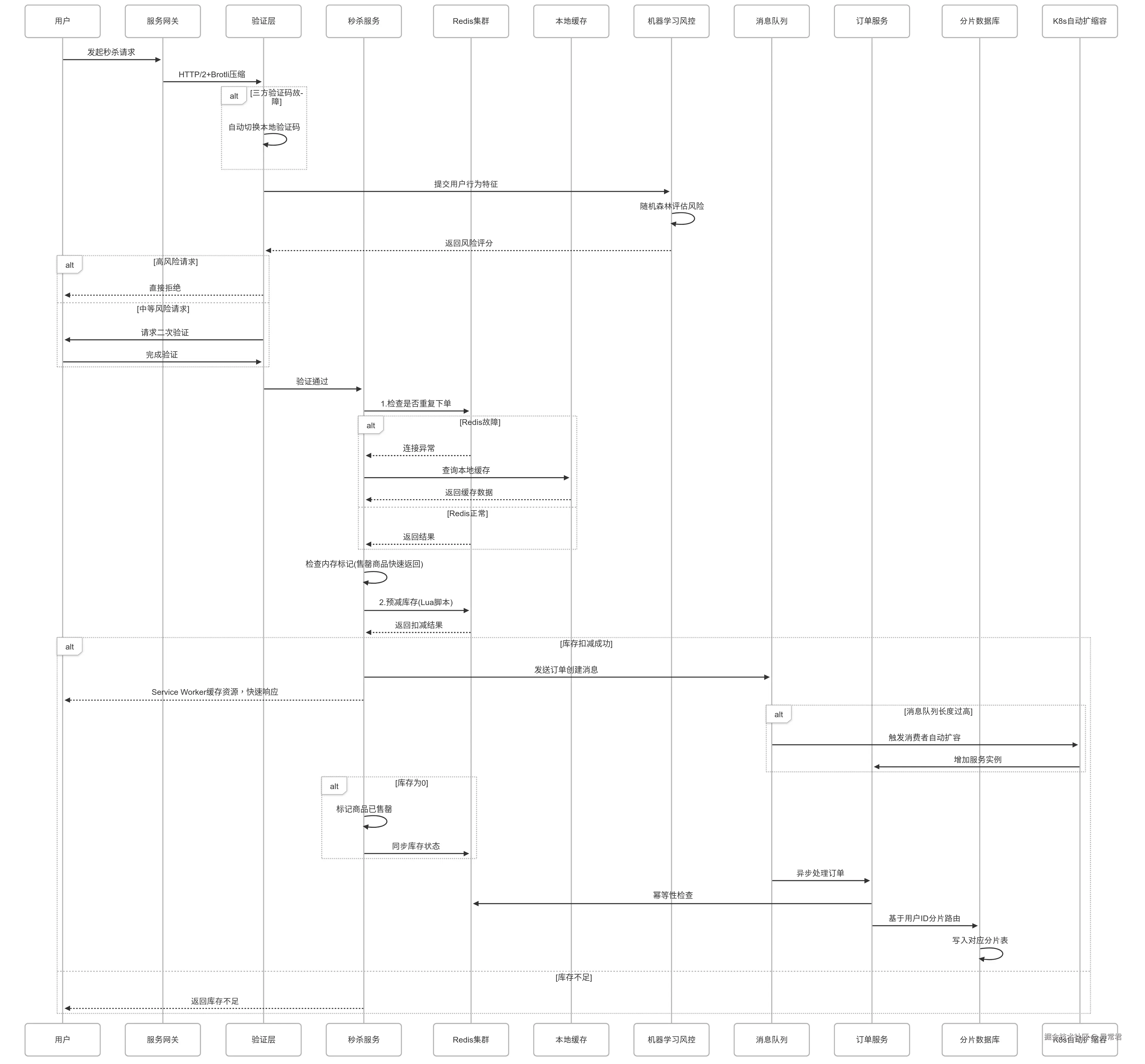 一个完整的秒杀系统架构通常包含以下几个部分: