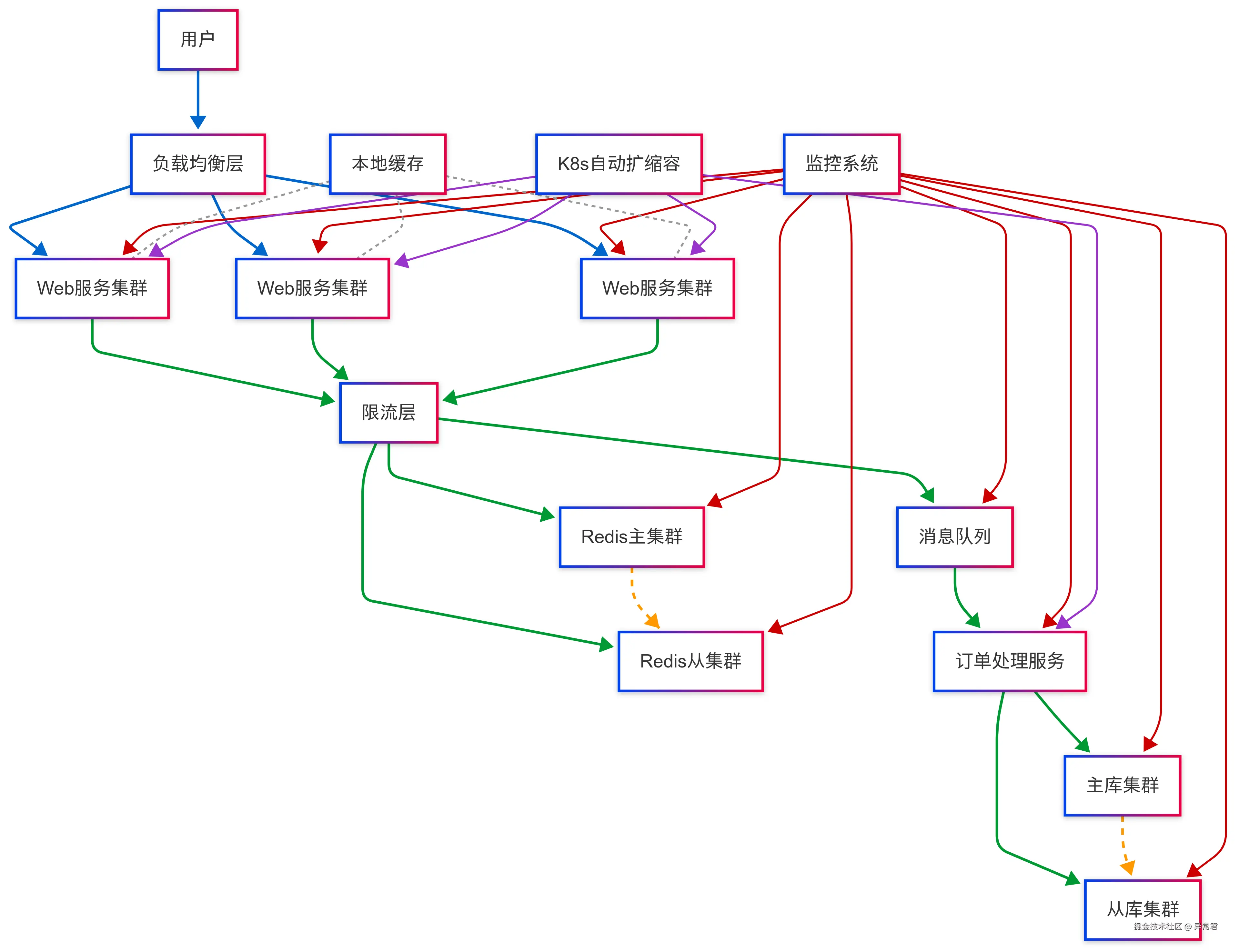 | 监控层 | 自动扩容 | 应对突发流量 | K8s 集成 + 基于指标触发 |