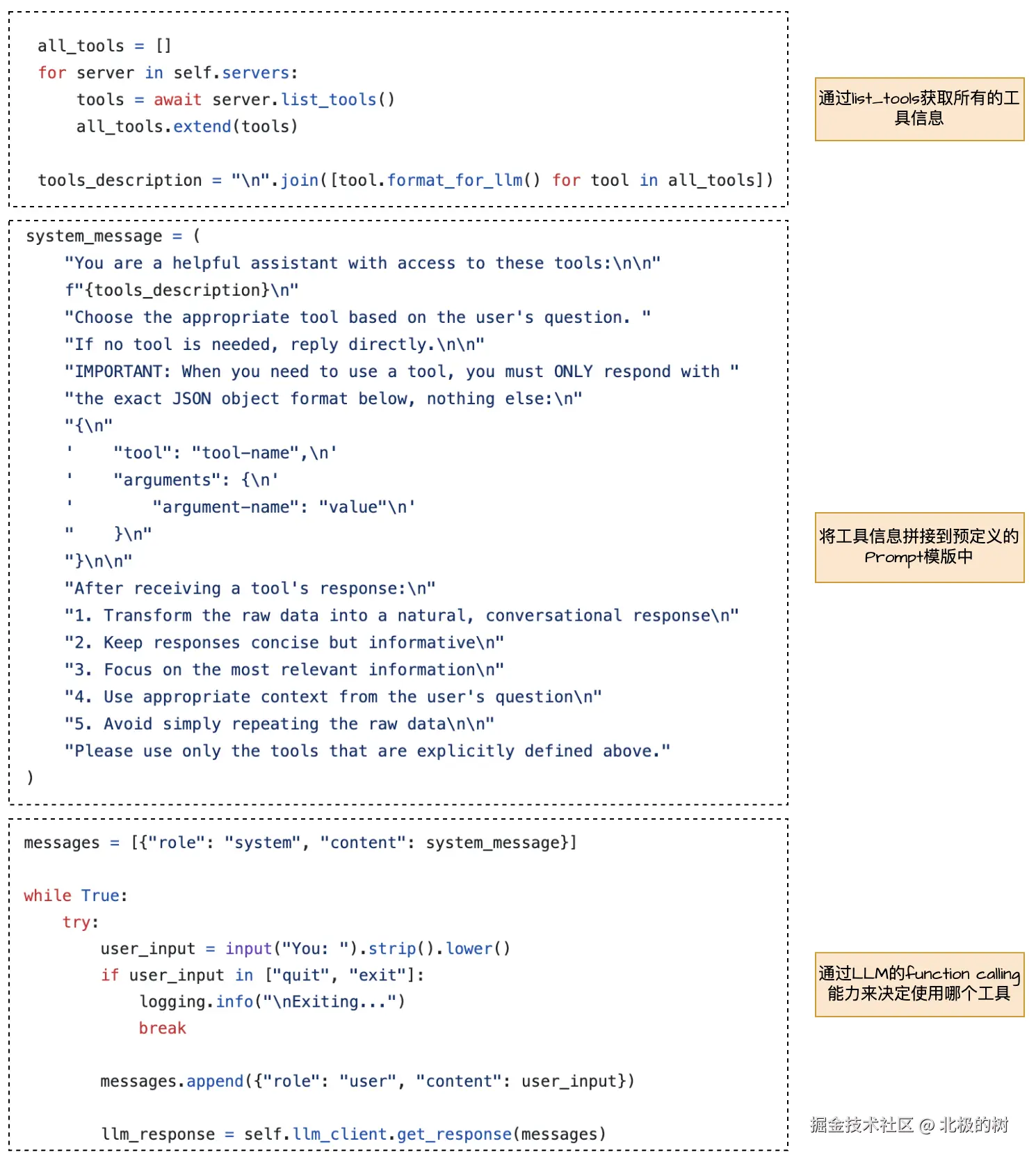 为了突破这一局限,OpenAI在2023年率先推出了Function Calling功能。通过这个功能,开发者可以定义外部工具或API,LLM可以在理解用户意图的基础上,智能地判断何时需要调用这些外部工具,并生成结构化的调用请求,从而间接实现与现实世界数据和服务的连接。