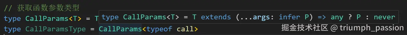 type CallParams<T> = T extends (...args: infer P) => any ? P : never