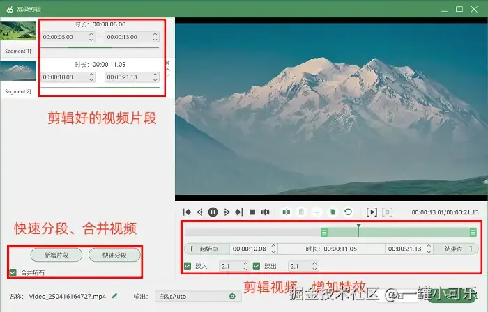 步骤3:录制结束后,别急着关闭软件。数据蛙录屏软件还为你准备了强大的后续处理功能。点击软件自带的 “高级剪辑” 工具,你就能对录制好的视频展开丰富的后期编辑。如快速分段视频、剪辑需要的视频片段等。