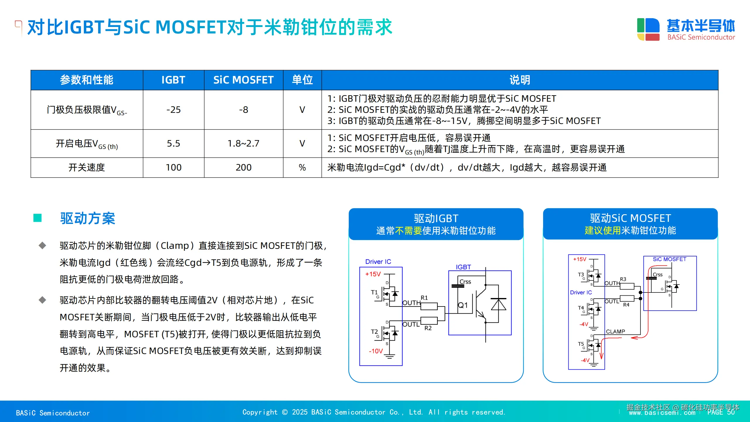 BASiC基本半导体的SiC MOSFET驱动解决方案,通过正负压供电、米勒钳位功能及优化的并联设计,显著提升了 电力电子系统使用SiC碳化硅MOSFET的可靠性与效率。实测数据表明,其在高温、高负载工况下的损耗与结温控制优于行业竞品,为高频、高功率密度应用提供了理想的技术支撑。随着SiC器件成本的持续降低,该方案在更广泛的新能源领域实现规模化应用。