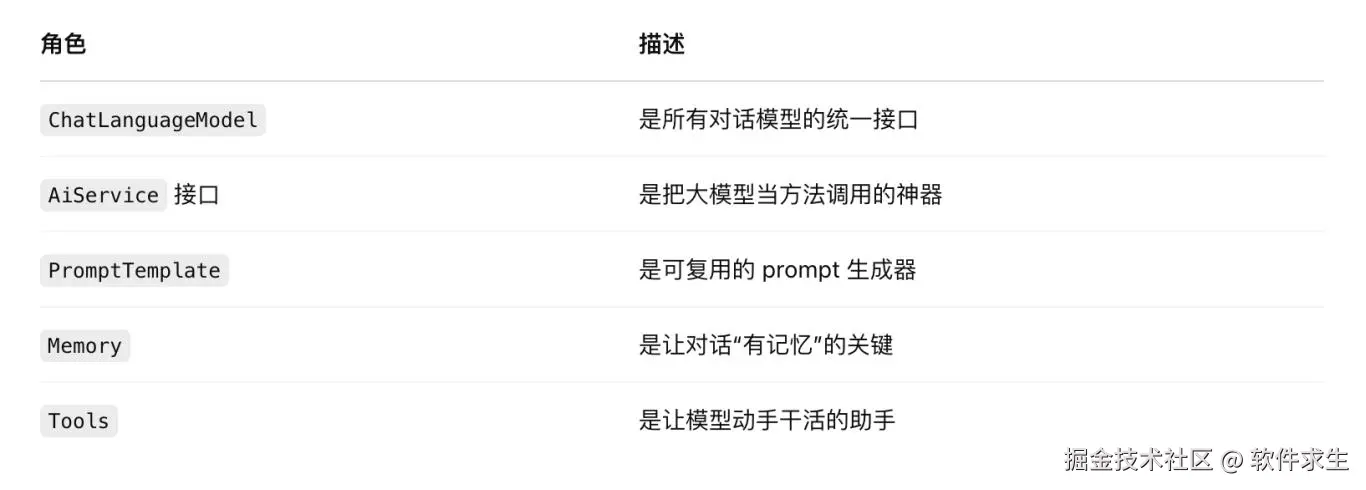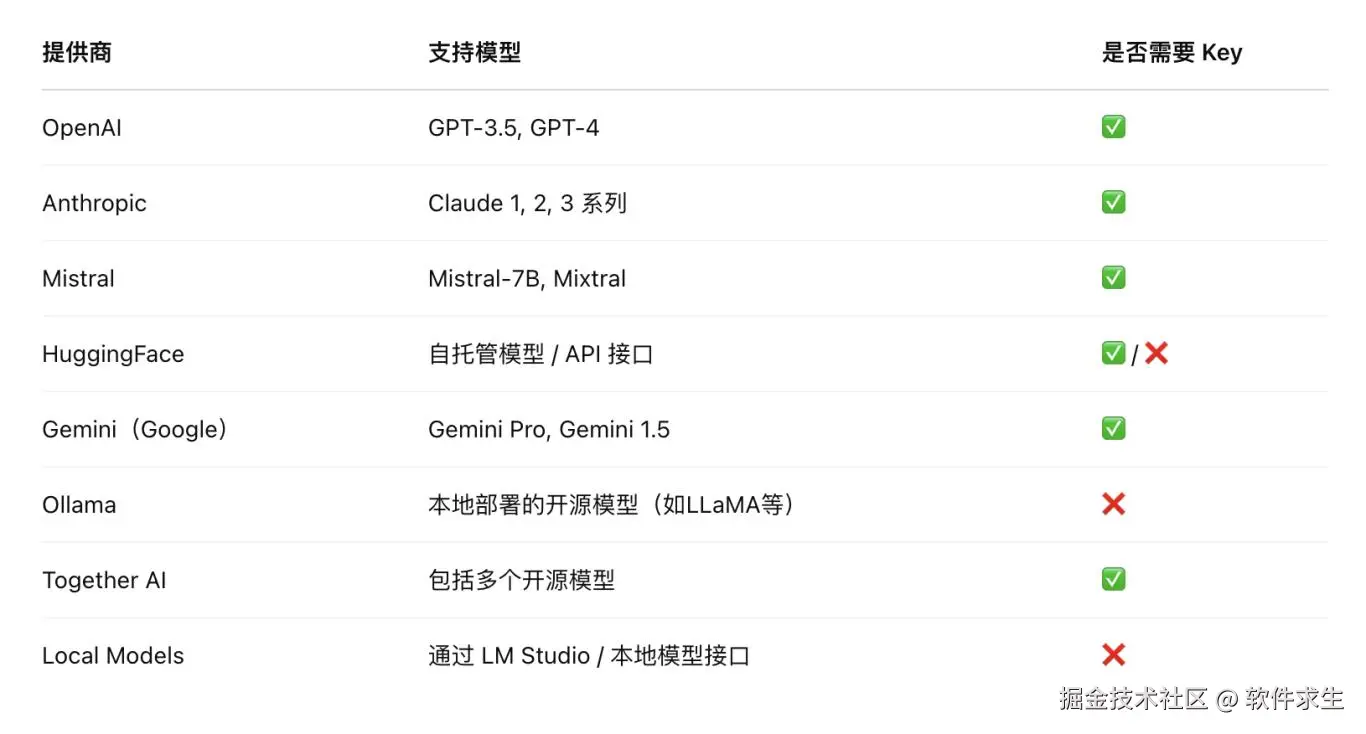 它让 Java 开发者也能像 Python 开发者一样,轻松接入 OpenAI、Gemini、Claude、Mistral 等主流 LLM,同时还封装了一整套链式调用、工具集成、Memory管理等功能。