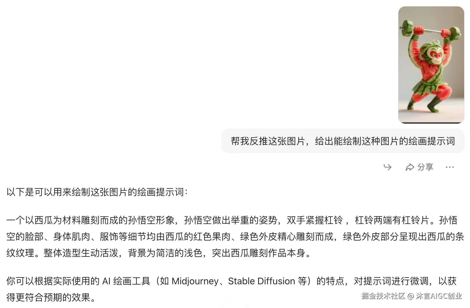 我们的目的是希望通过反推这个对标图,获得参考绘画提示词;注意,这里的描述是参考提示词,因为通常来说是很难一次性就得到能完美复刻对标图片的绘画提示词的。我们在豆包AI中输入提示词和图片: