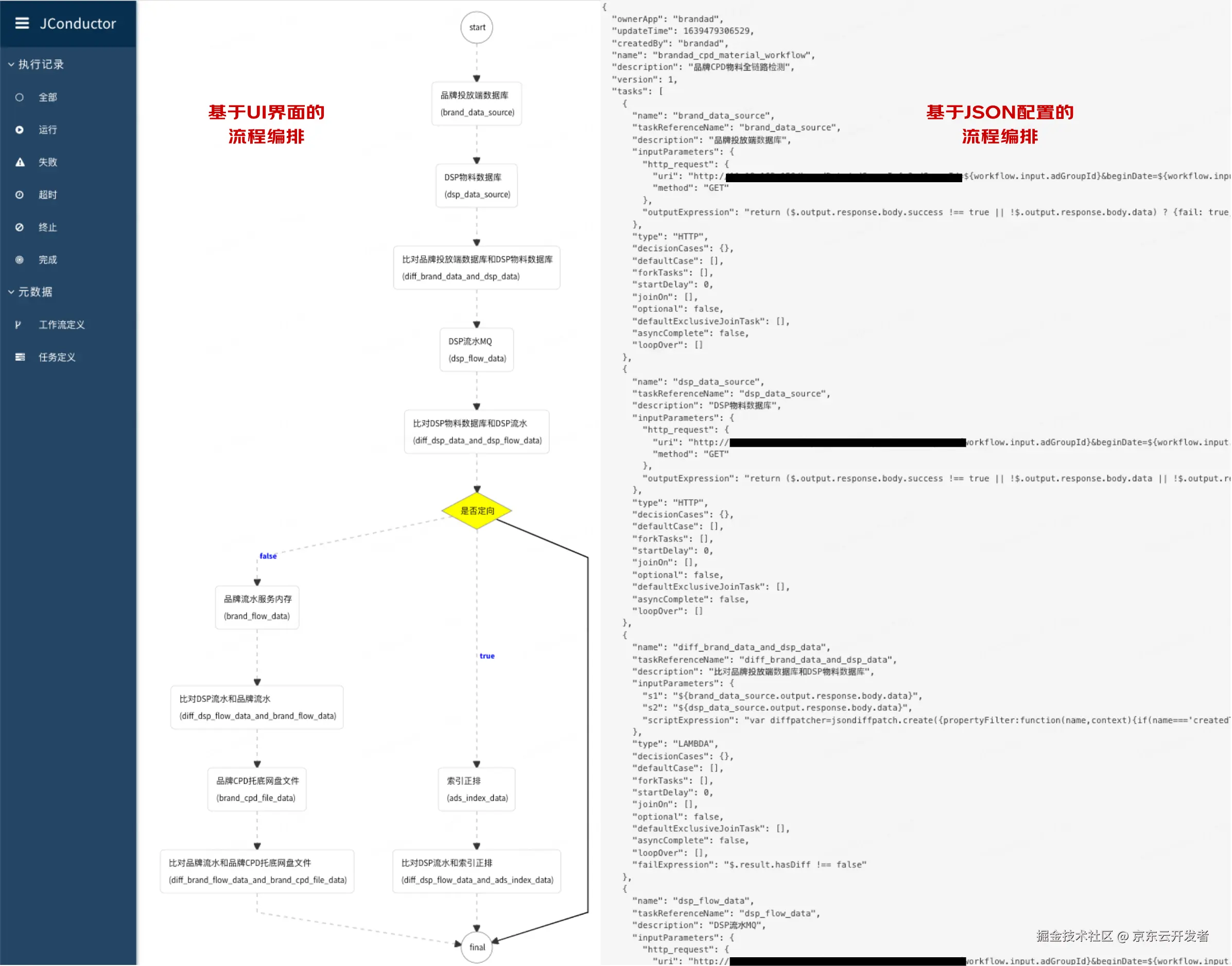 尽管我们在PICASO框架中舍弃了图形化流程编排框架的设计,但是我们并没有否定它存在的意义,这种编排方式在低代码编程领域占有重要的地位。但是它更适合在一些节点类型有限或者流程相对稳定的业务场景下使用,比如审批流程,虽然审批流可能有很多,但是每个审批流程中的节点种类往往不多,可以用相对固定的模式进行串联;或者广告播放流程,尽管其业务流程同样节点众多、冗长复杂,但是流程数量相对固定,基本上可以分为展示、搜索、推荐、站外、合约这五大核心流程,很多变更是对流程的微调或节点内部的逻辑升级。与这些业务相比,广告投放系统则维护了近300个能力节点、400多条请求处理流程,每次需求迭代都会涉及数十条业务流程的变更。在这样的业务特点下,简洁、灵活、集中、连贯的开发体验要比一个炫酷的UI交互界面重要的多。当然,我们依然十分认可图形化界面强大的呈现能力,事实上我们也在规划为PICASO框架开发内置的代码元数据管理平台,其中一项重要的功能就是把代码中基于能力编排DSL构建出来的领域能力执行图解析为业务流程图回显到交互界面中,让开发者可以直观地查看所有领域服务的处理流程。但是该平台只做能力编排逻辑的图形化展示,领域能力执行图的构造依然是通过代码中的能力编排API实现的(当然该平台也可以提供各个能力编排节点配置属性的动态修改功能,但是这仅作为紧急情况下的应急处理措施)。