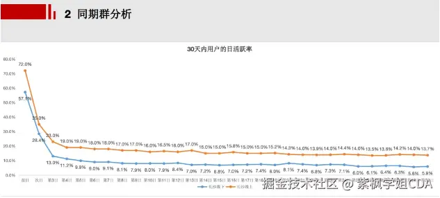 同期群分析通过量化行为指标,分析不同群体在特定时间段内的行为变化,帮助我们衡量用户在社群中的活跃情况。