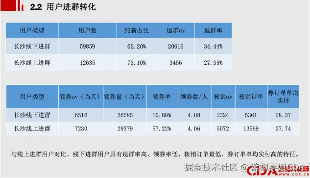 因此,需要对线上拉新和线下拉新两种模式下的用户各项指标进行对比分析,以评估其交易转化情况。