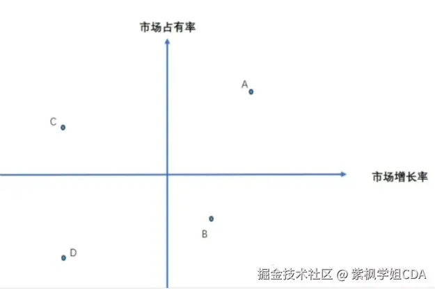 通过这张图,我们可以将各产品定位到波士顿矩阵的不同象限中。