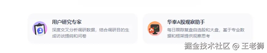 当前扣子提供了两个内置的专家模式,一个是用户研究专家和华泰A股观察助手。当前两位「专家」都已经明码标价——限时免费,这对以后agent付费埋下了一个深深地伏笔~