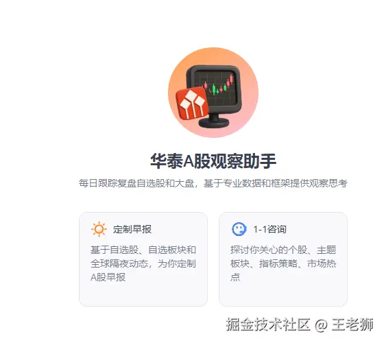 A股观察助手提供了以上定制早报和1对1咨询的能力。