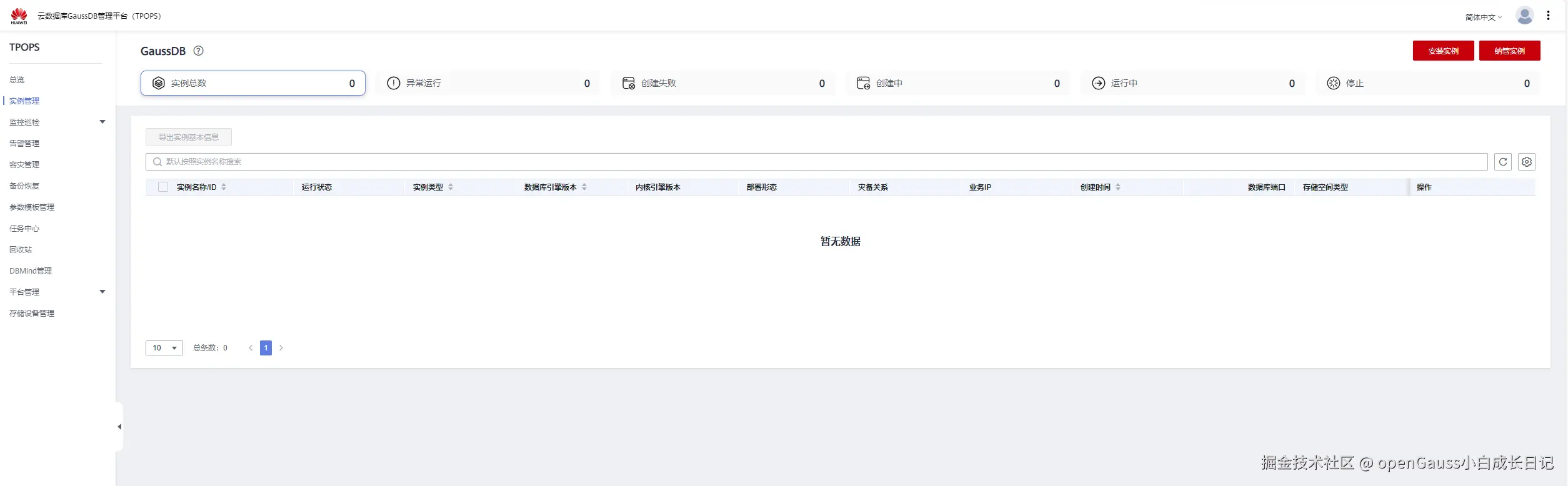 图1 云数据库GaussDB管理平台(TPOPS)主页面