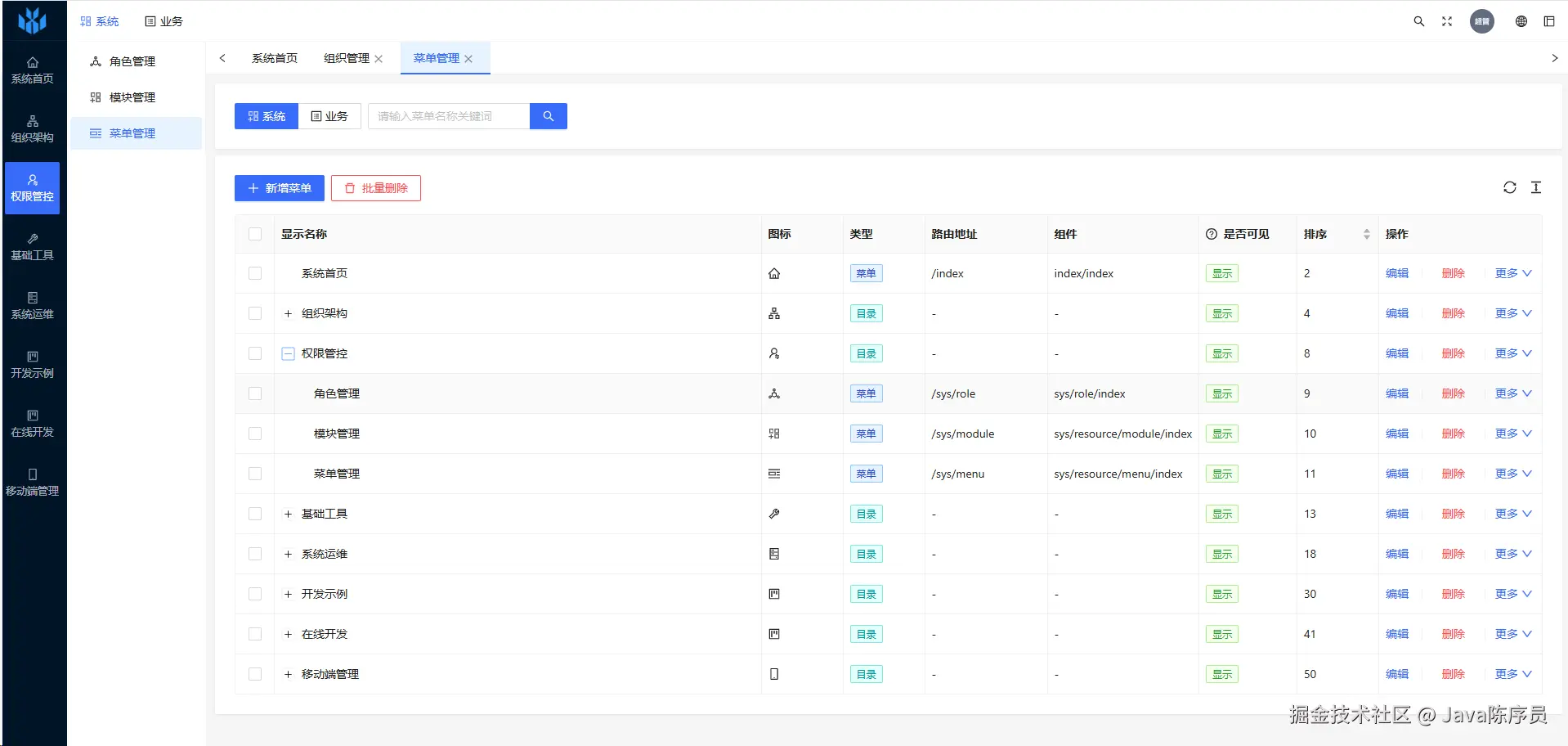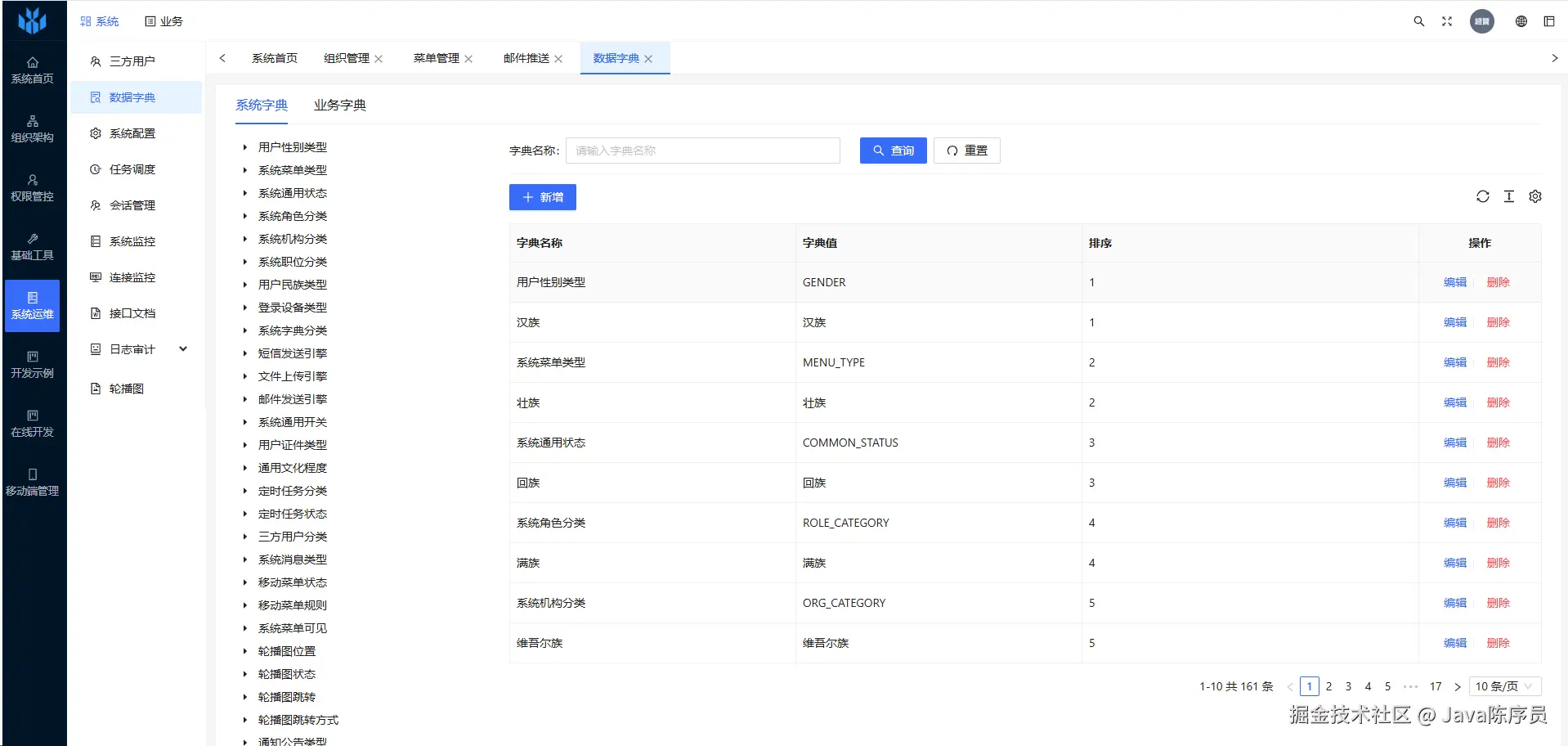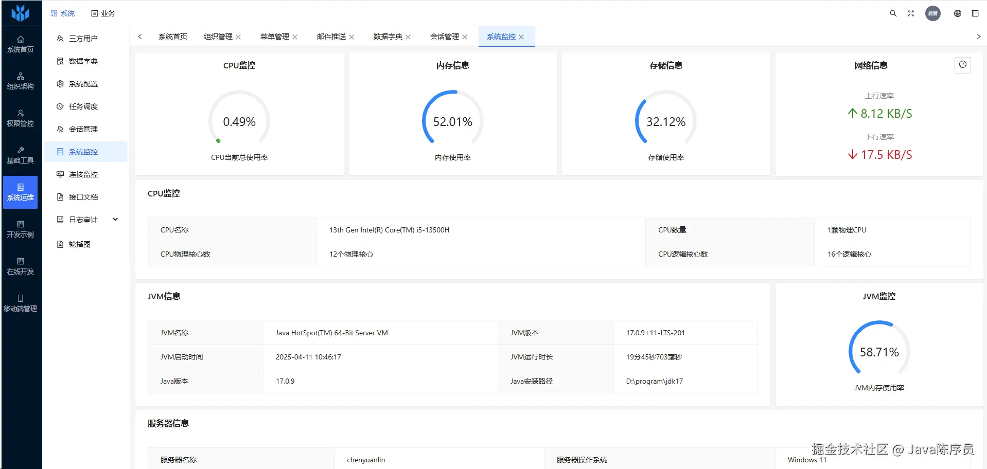 - 开箱即用:提供完整的权限系统基础功能、系统监控、代码生成器、工作流等功能