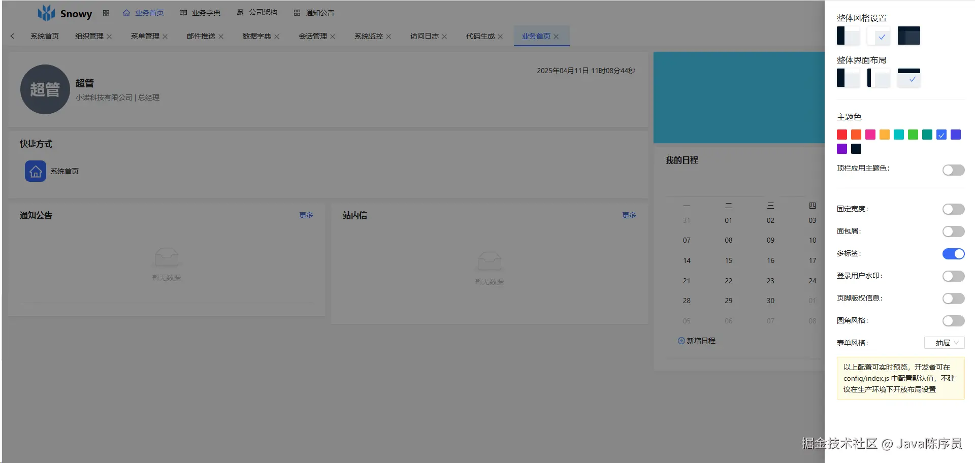 可以说 Snowy 是一个超级 nice 的后台权限管理系统,功能齐全,十分适用于中小企业快速开发!快去试试吧~