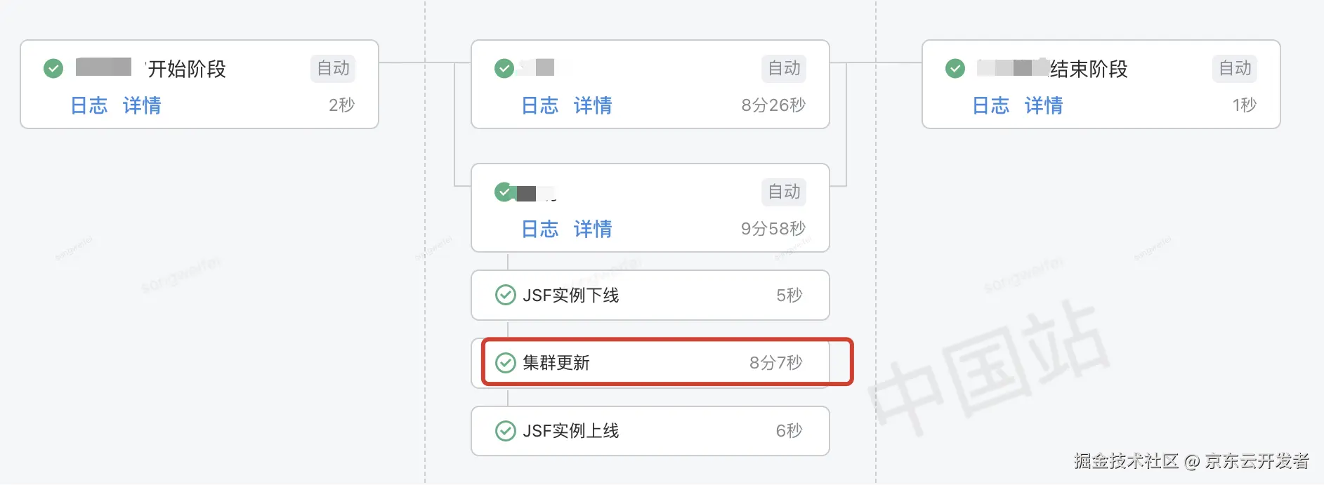 3.综上所述,可以看出对应用的启动速度优化刻不容缓,浪费时间就是在浪费生命,所以我们必须要做些什么,下面通过一张图先来看下旧的生产集群发布的概况。