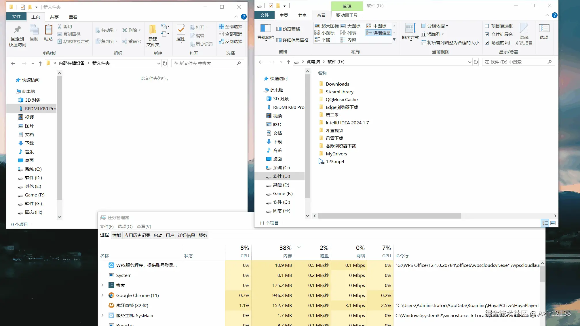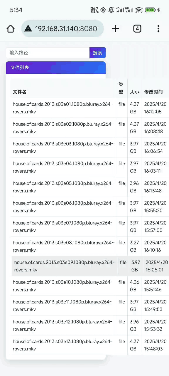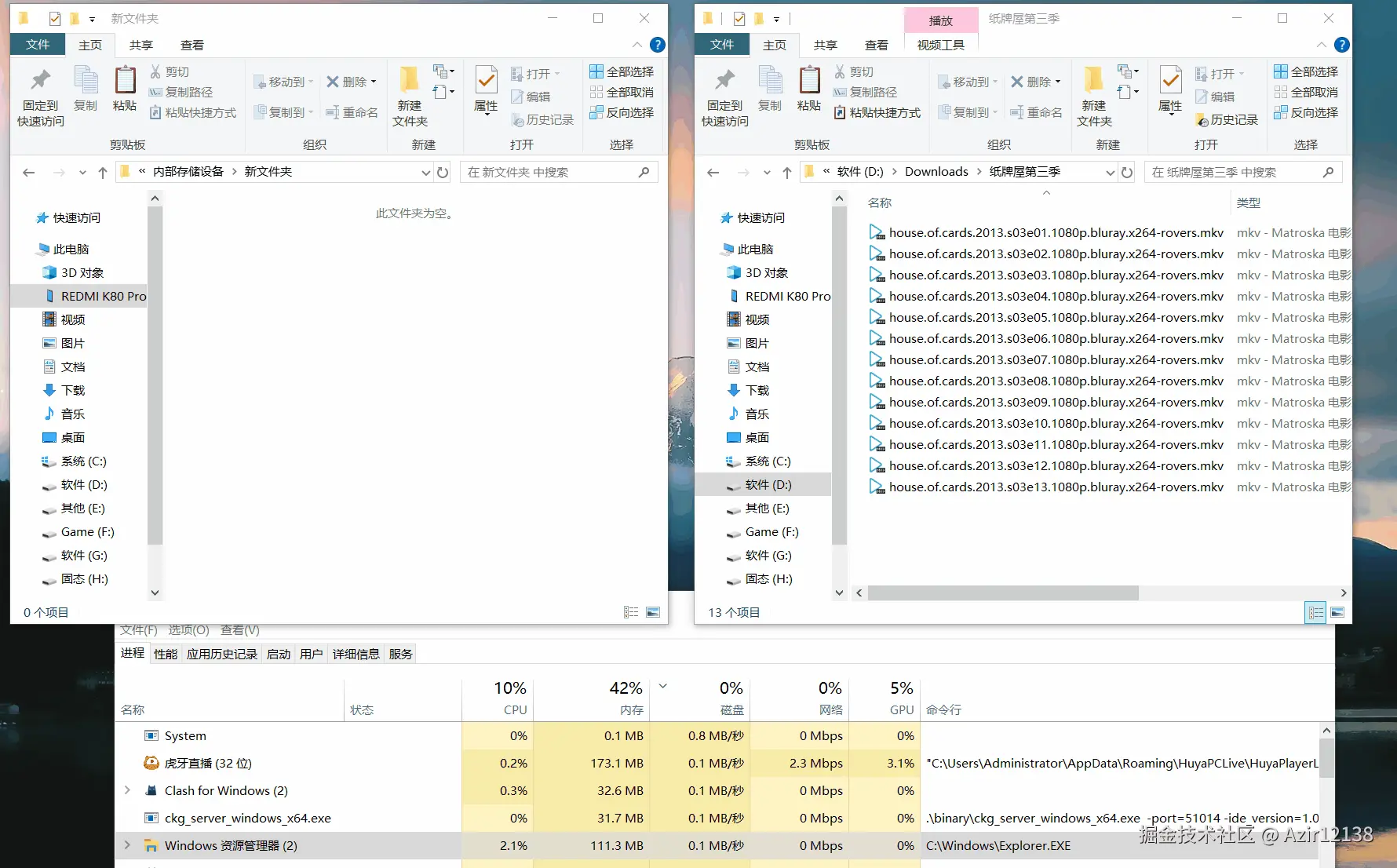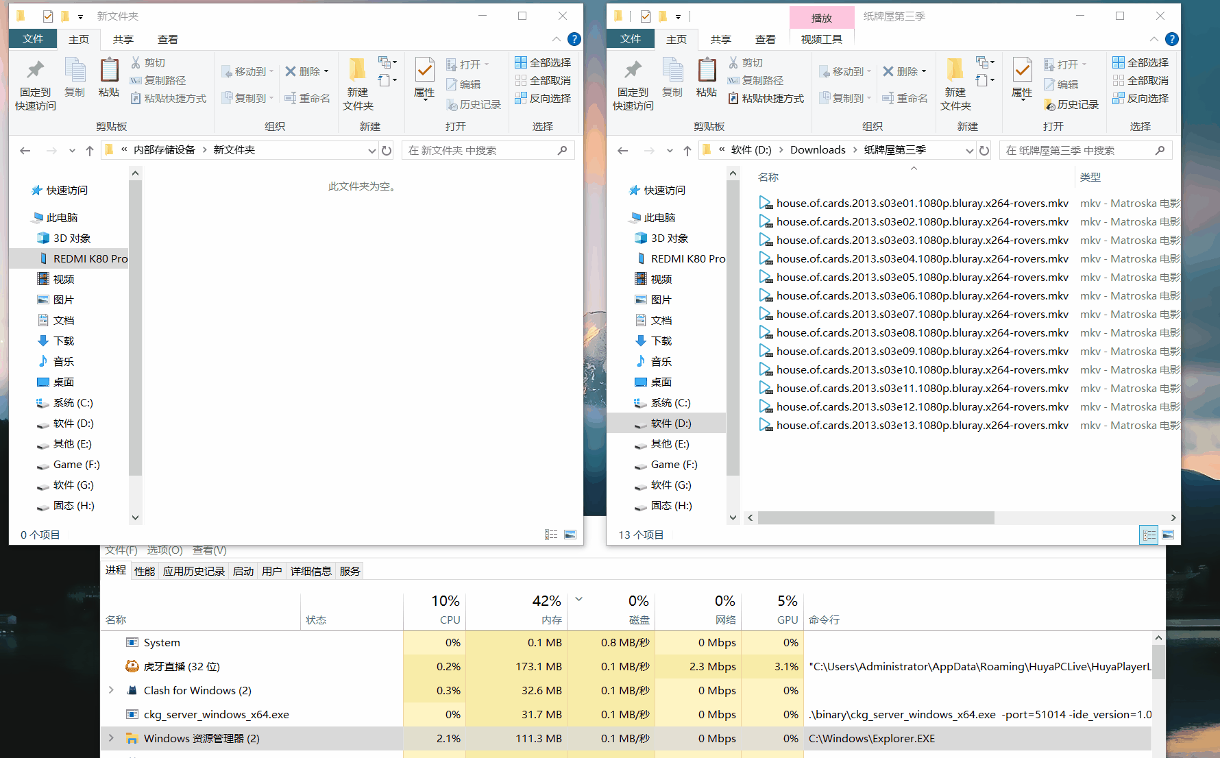 最近在追美剧纸牌屋,找到的资源都很高清,一集的大小就到了3-4个G。因为主包的手机USB接口还是2.1(这里提一嘴,REDMI K80 Pro居然还是2.1),导致传输速度很慢。