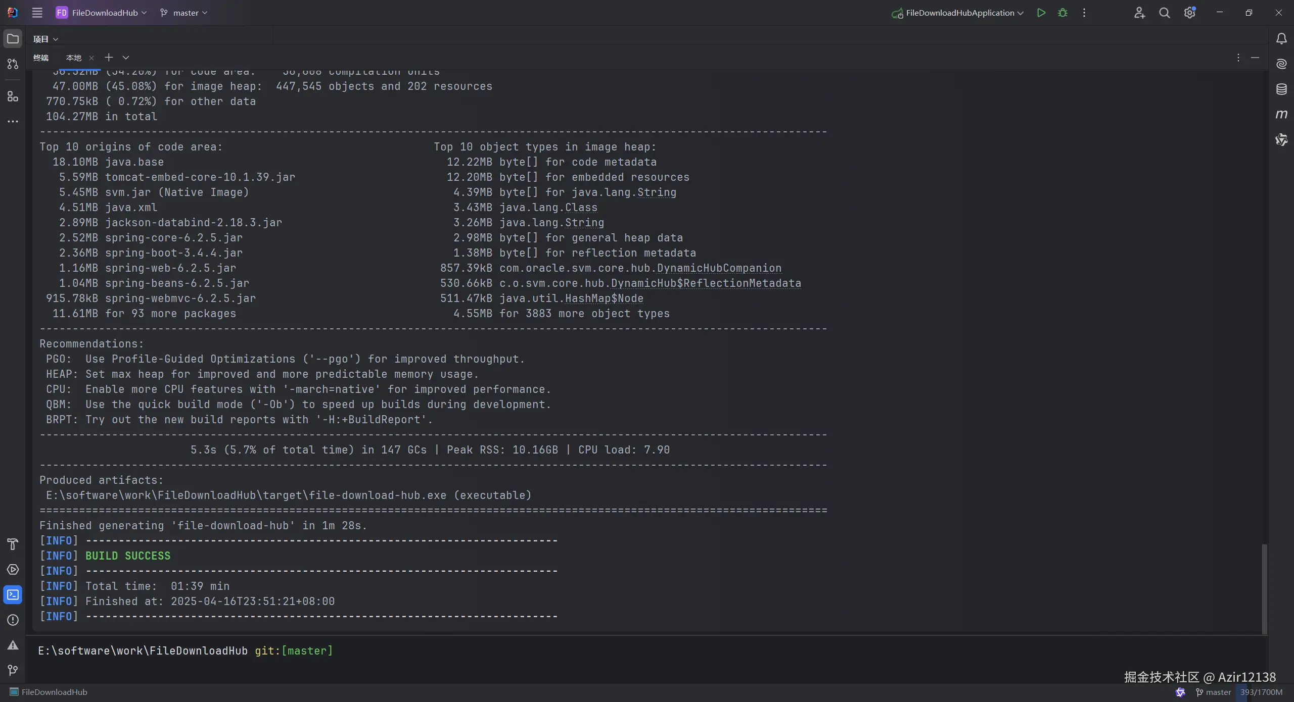 得益于SpringBoot3原生支持GraalVM,所以我们可以很方便的使用GrallVM JDK来编译成可执行文件,启动服务器时无需JDK的依赖。