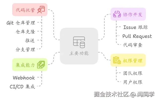 协作开发。支持 Issue 跟踪、Pull Request(PR)、代码审查等协作工具。