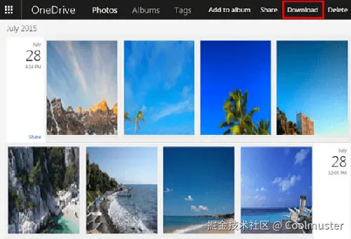 与方法1一样,我们还教您如何将OneDrive中的照片下载到电脑上。只需转到您的计算机,登录 OneDrive。然后,选择“照片”选项,然后从顶部菜单中选择“下载”选项卡。之后,选择要下载到PC的图片并点击“下载”按钮。