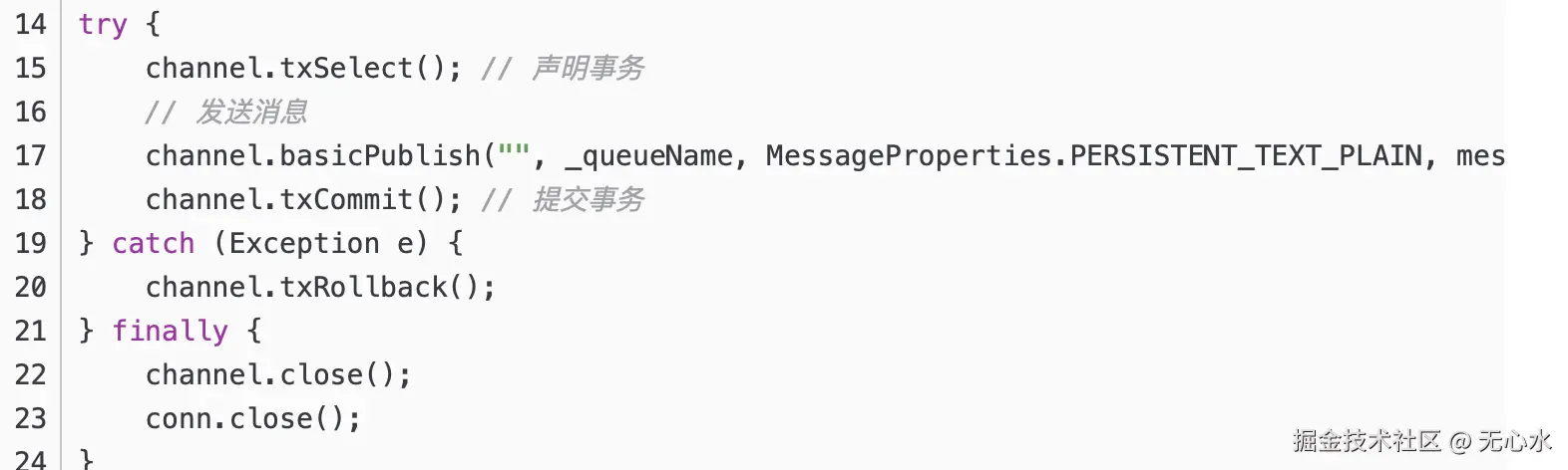 - AMQP协议提供的一个事务机制