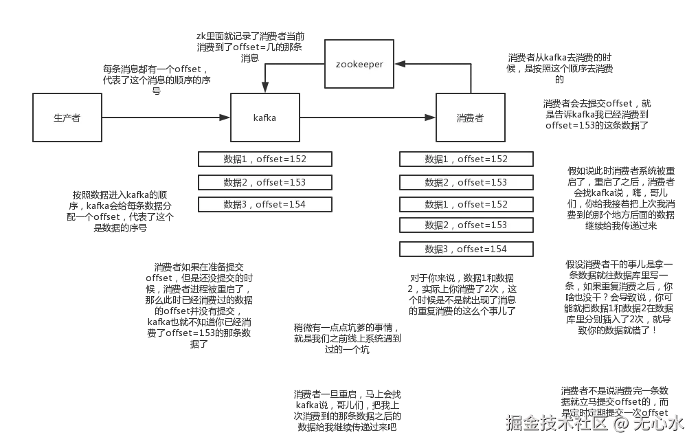 Kafka消息重复场景:消费完成,在准备提交offset时,还没提交,消费者重启