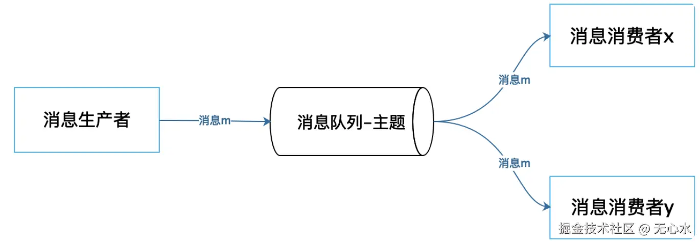 多个消息消费者可以订阅同一个主题,每个消费者都可以收到这个主题的消息拷贝,然后按照自己的业务逻辑分别进行处理计算