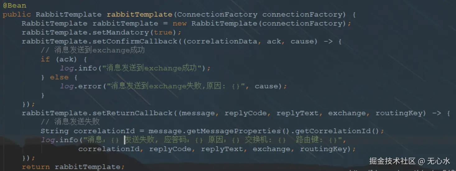 - 需要先设置rabbitTemplate.setMandatory(true)