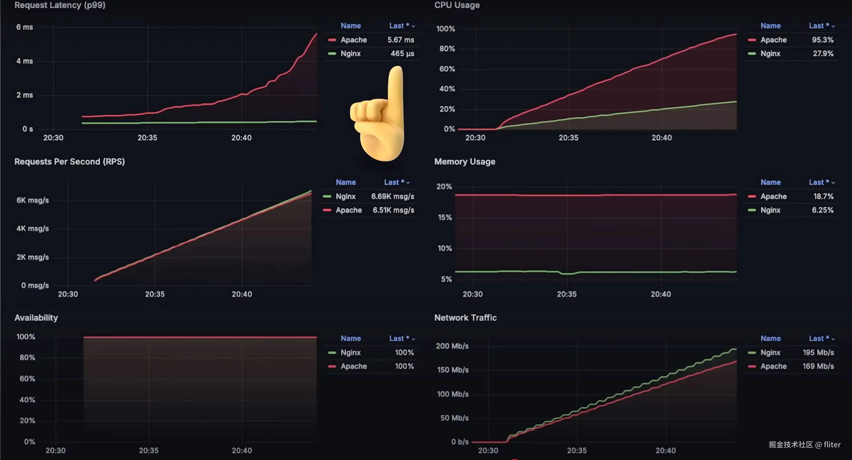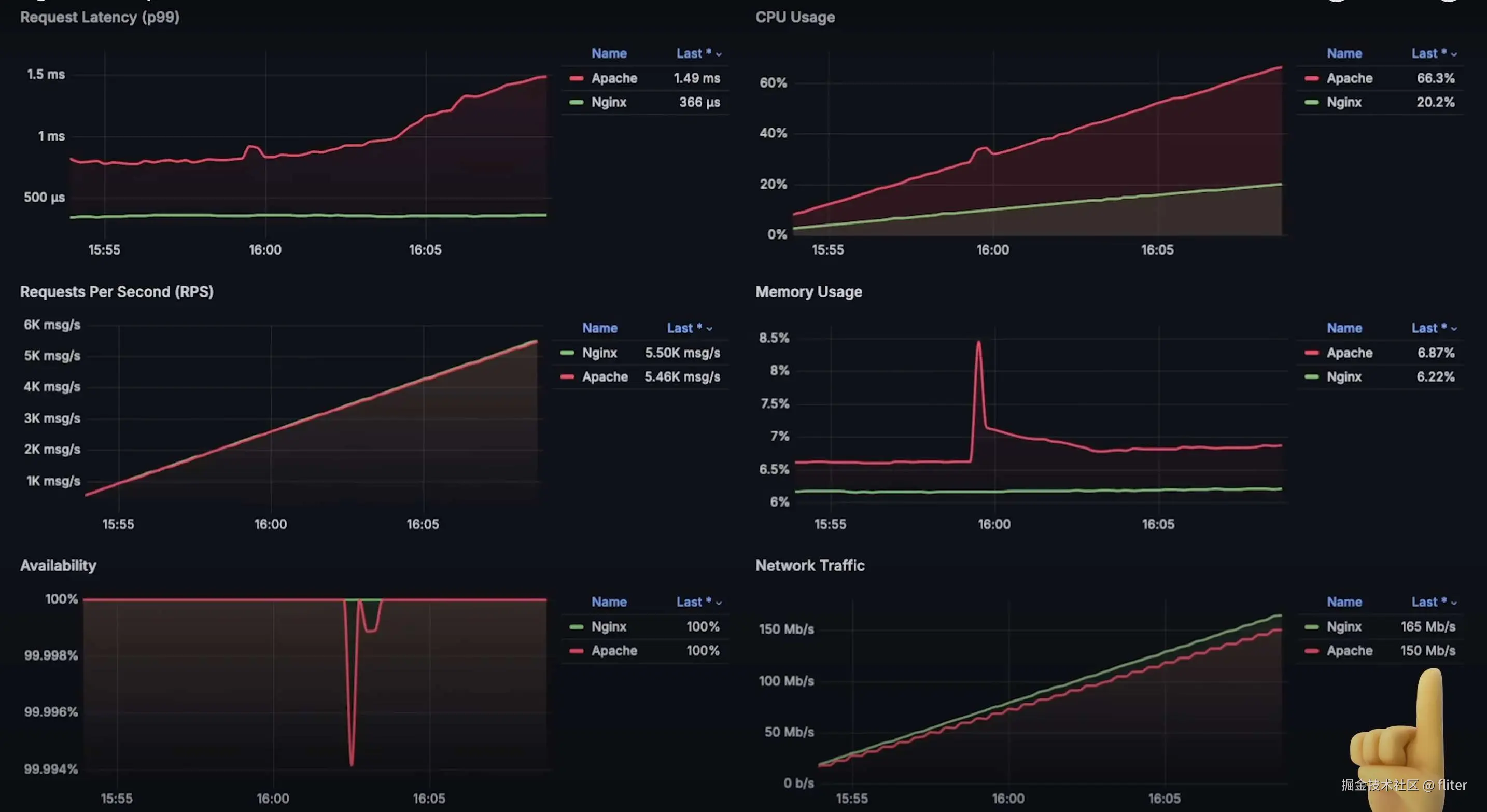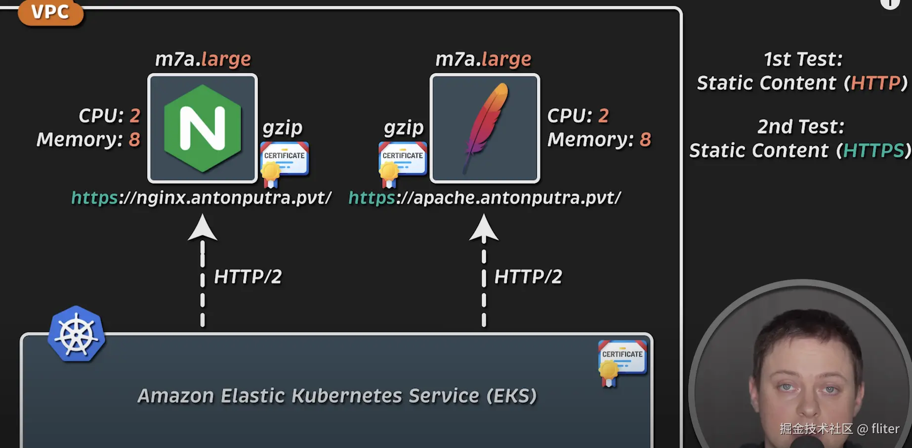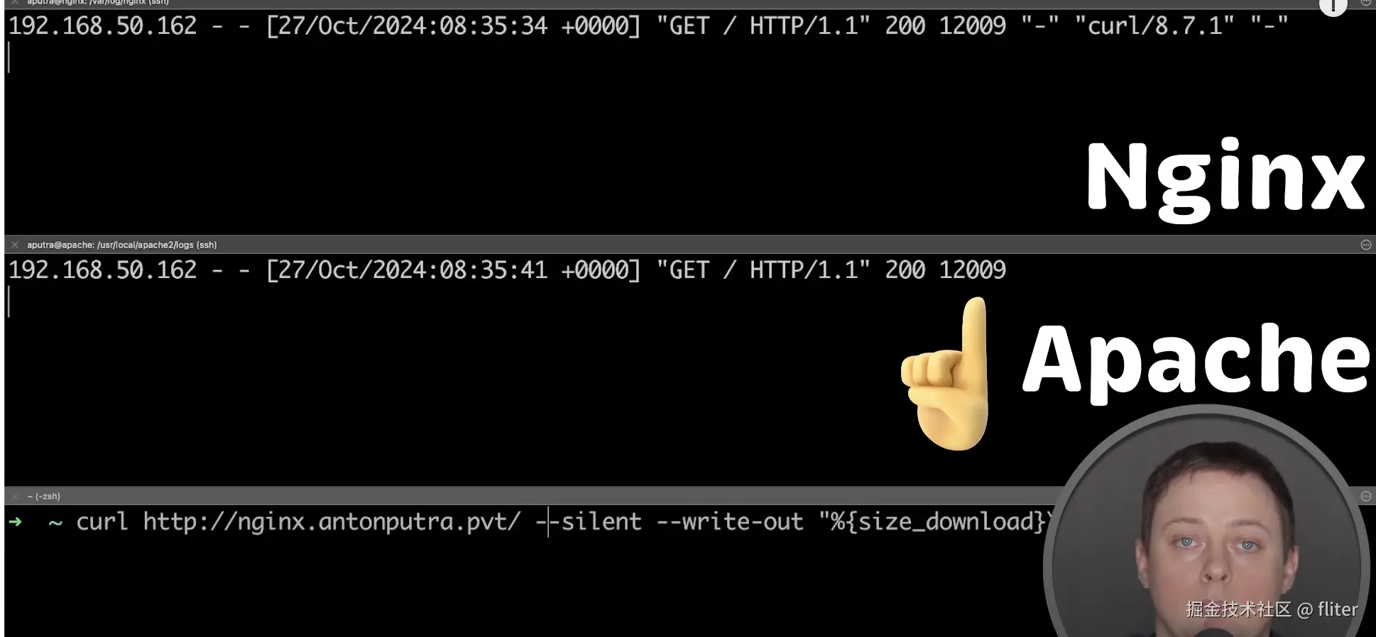 本内容是对知名性能评测博主 Anton Putra Nginx vs Apache Performance 内容的翻译与整理, 有适当删减, 相关指标和结论以原作为准