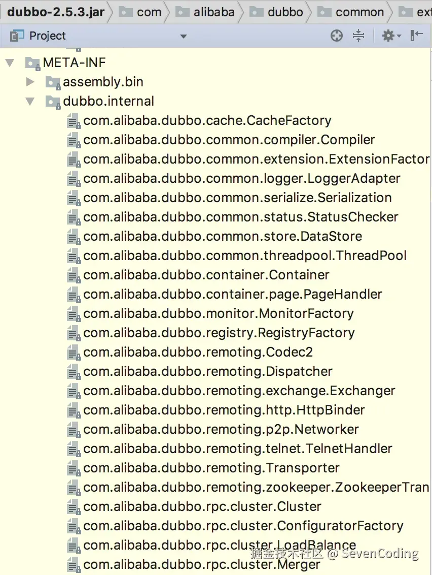 如上述代码片段可知,dubbo是支持从META-INF/dubbo/,META-INF/dubbo/internal/以及META-INF/services/三个文件夹的路径去获取spi配置